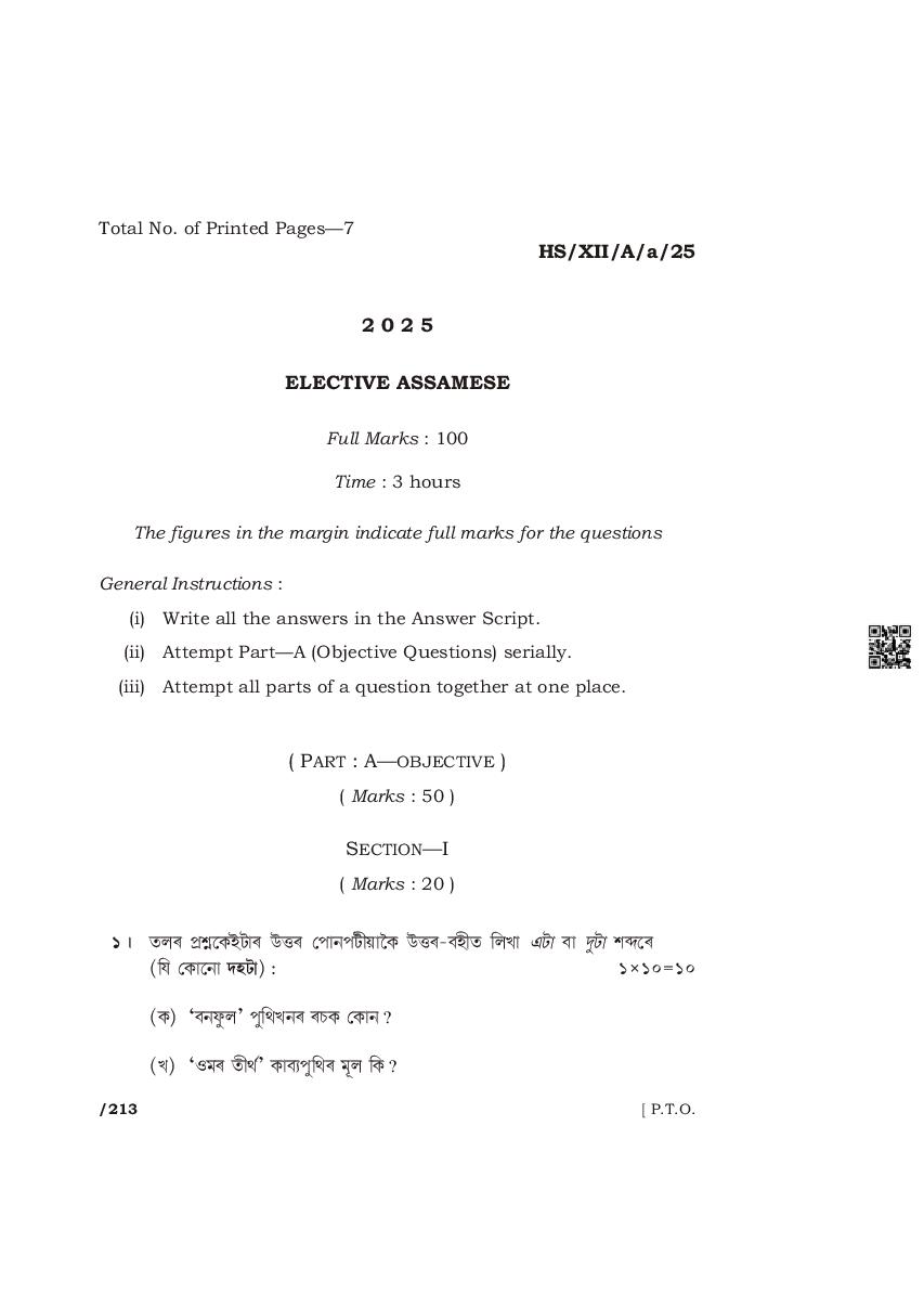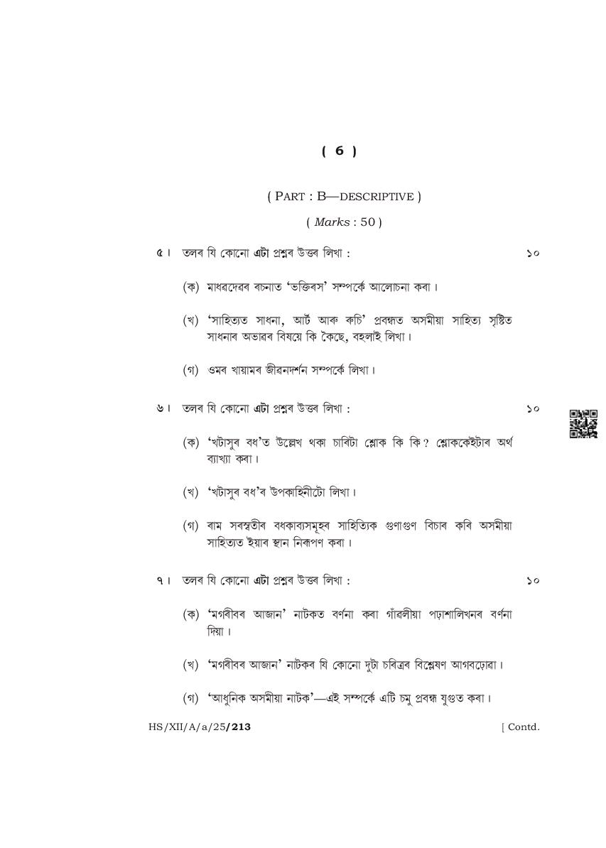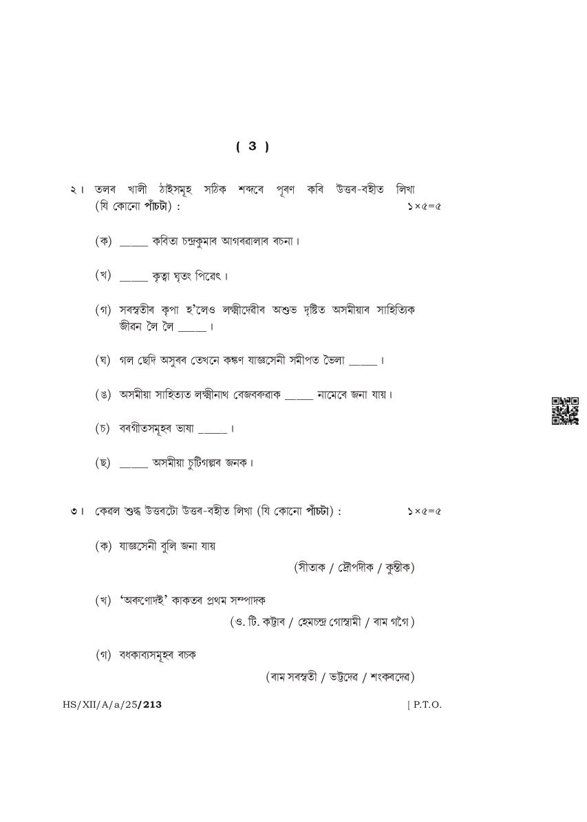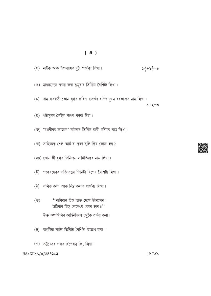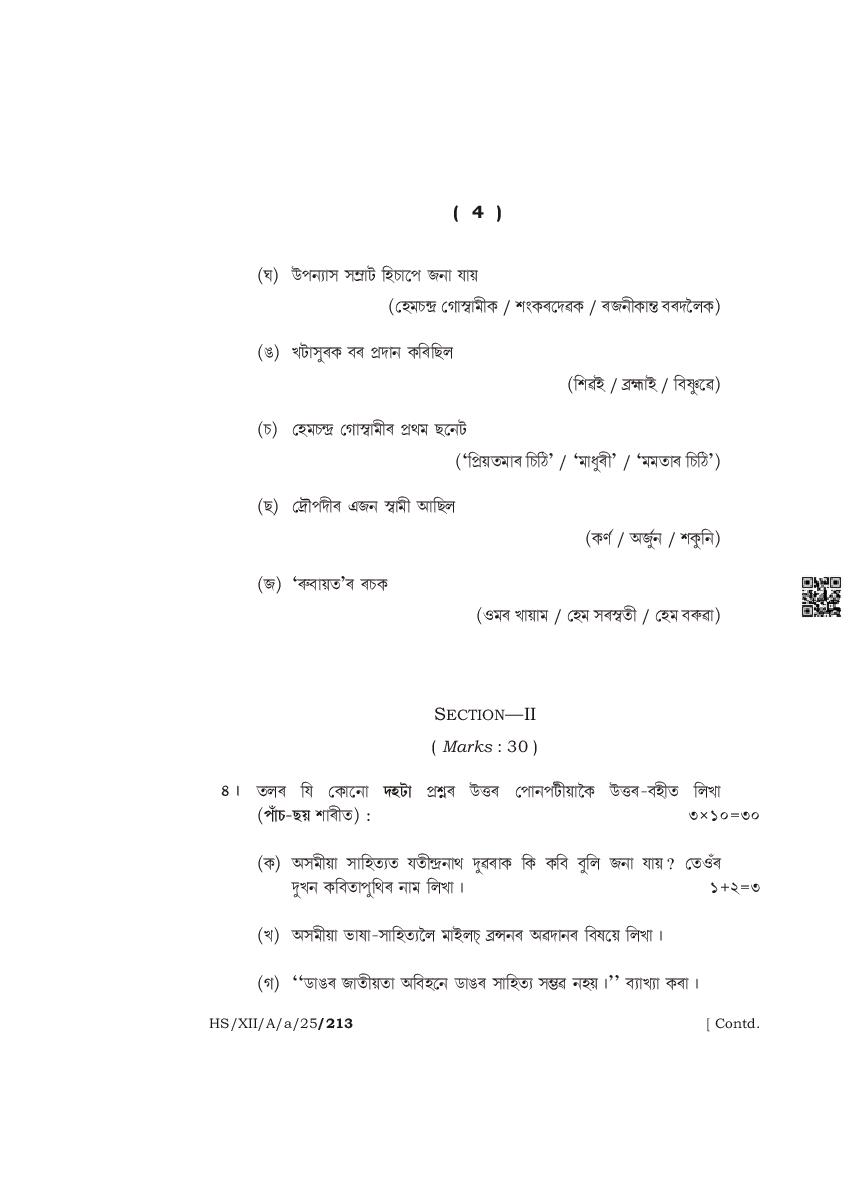 The complete class 12 question paper for Assamese Elective subject is as follows.