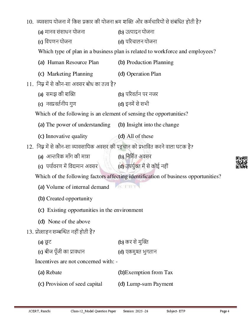 Study Material HereJharkhand Board Class 12 Model Paper for Entrepreneurship