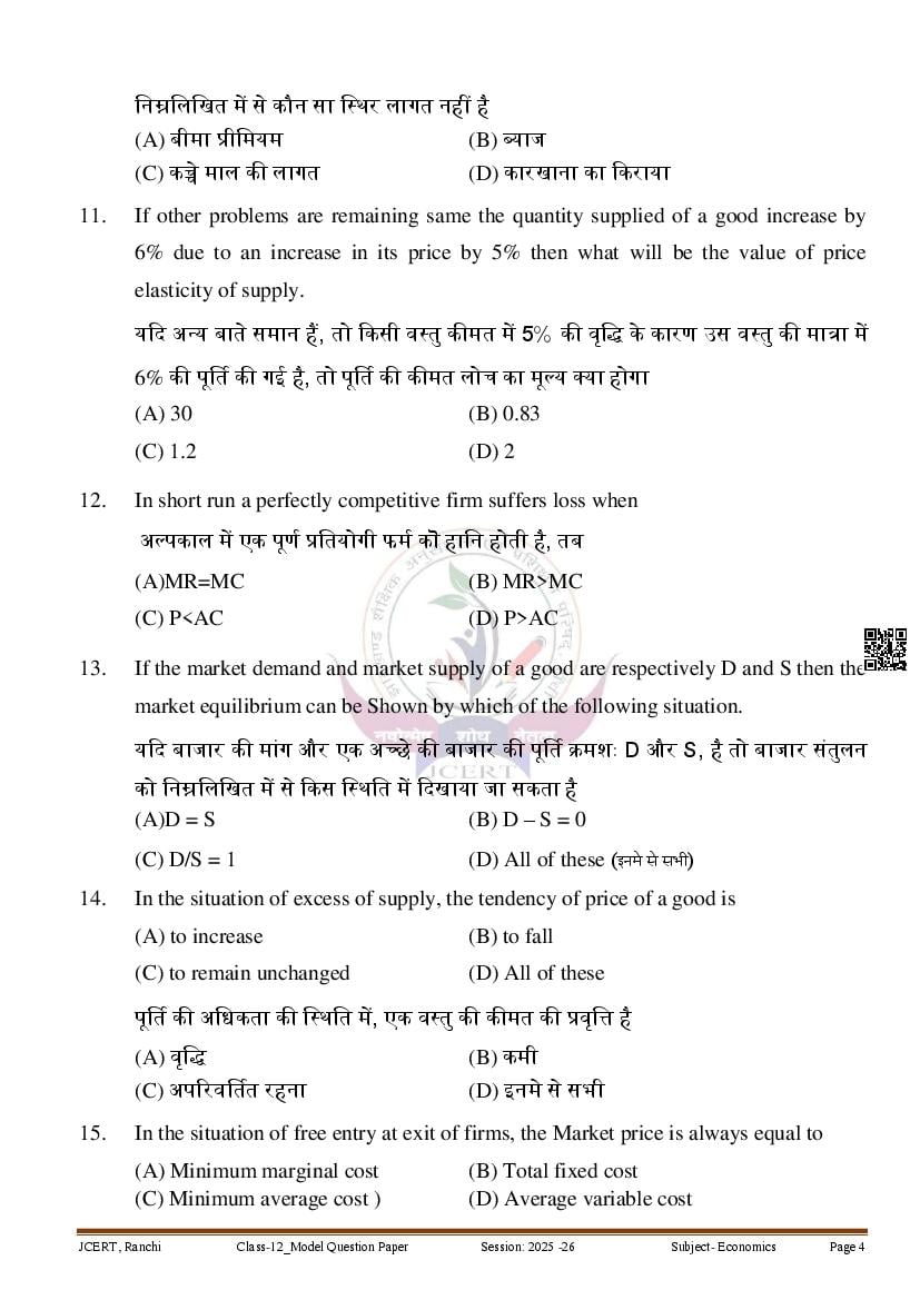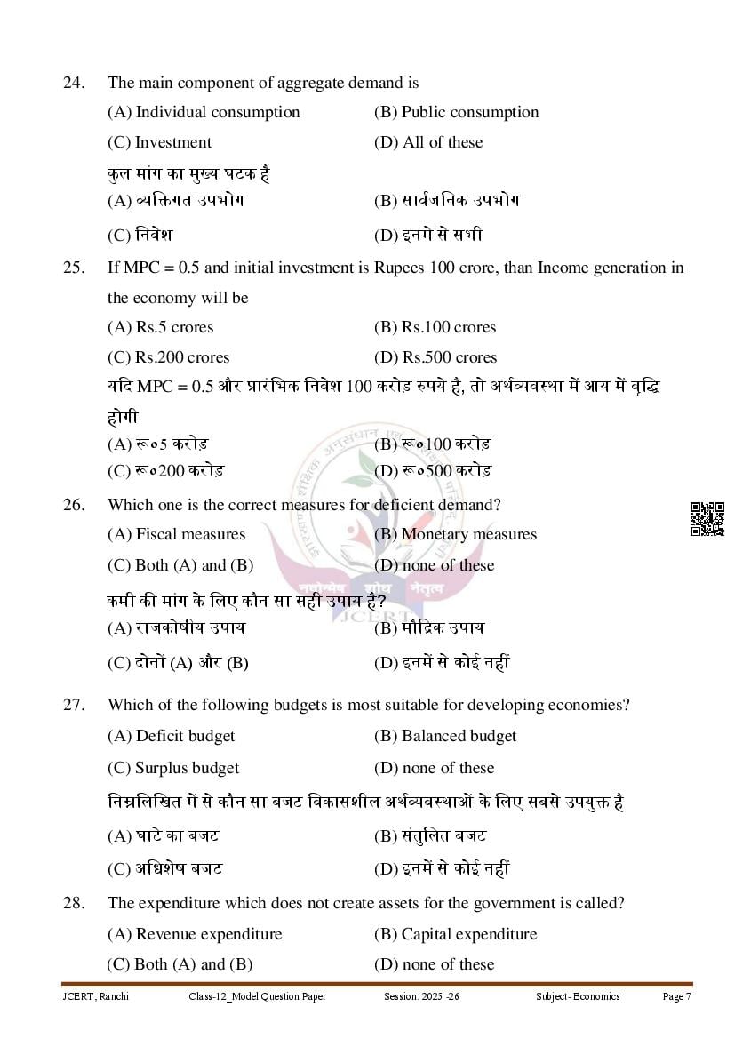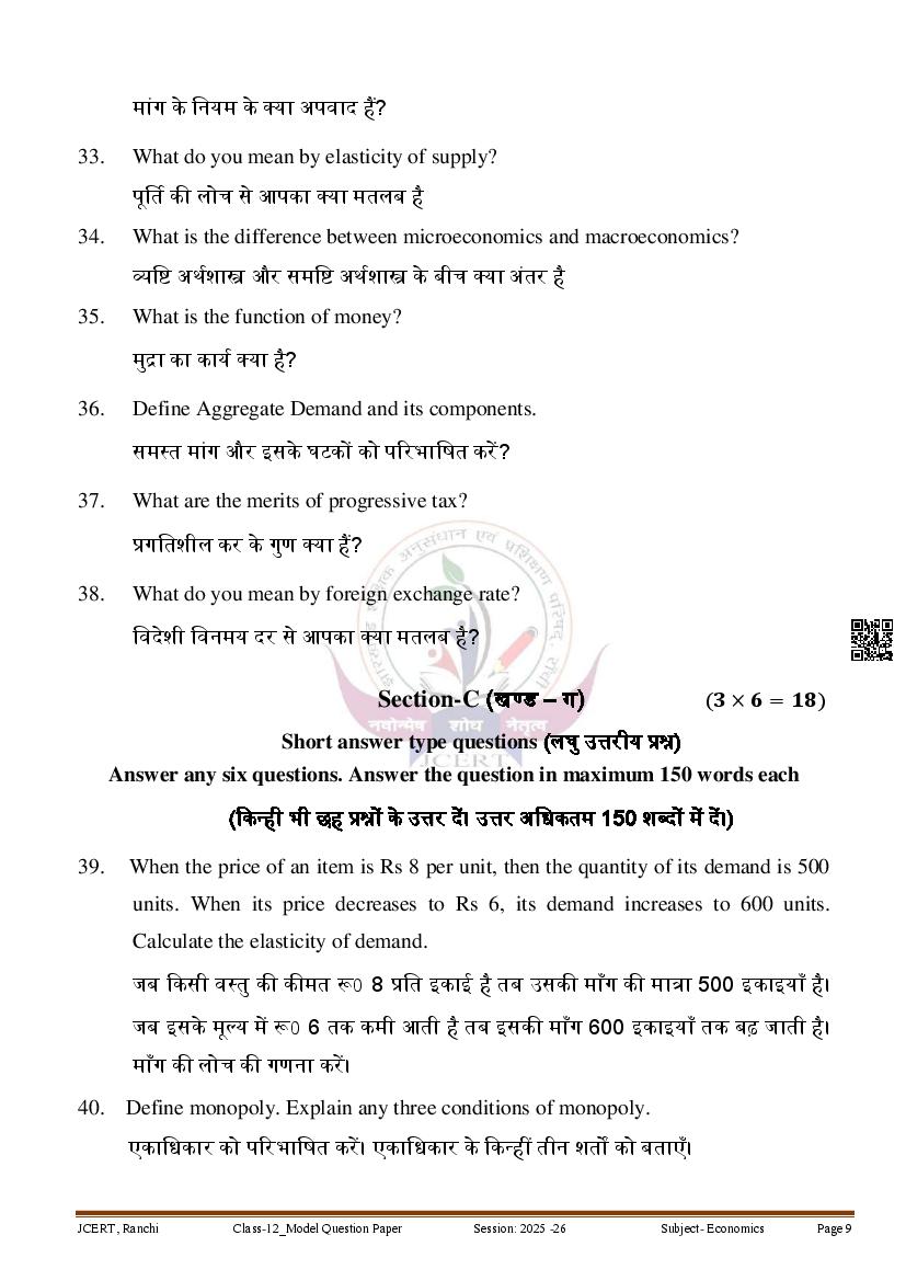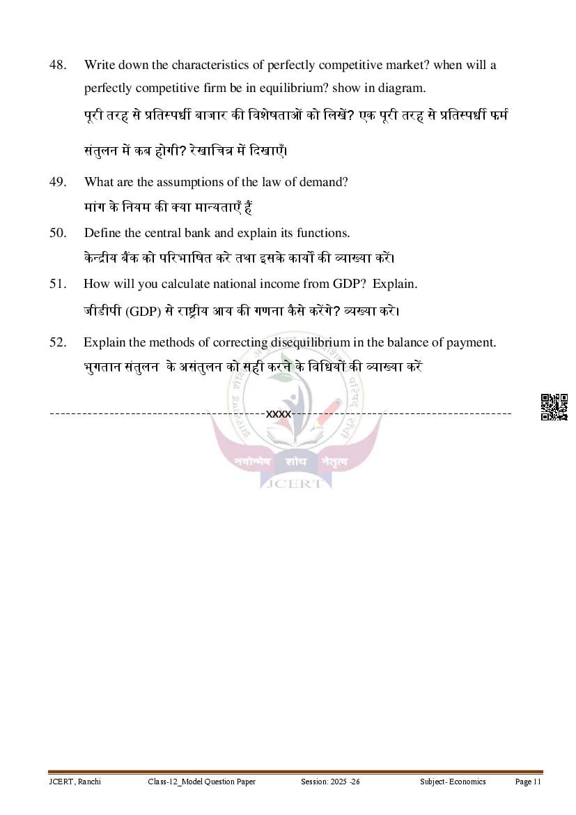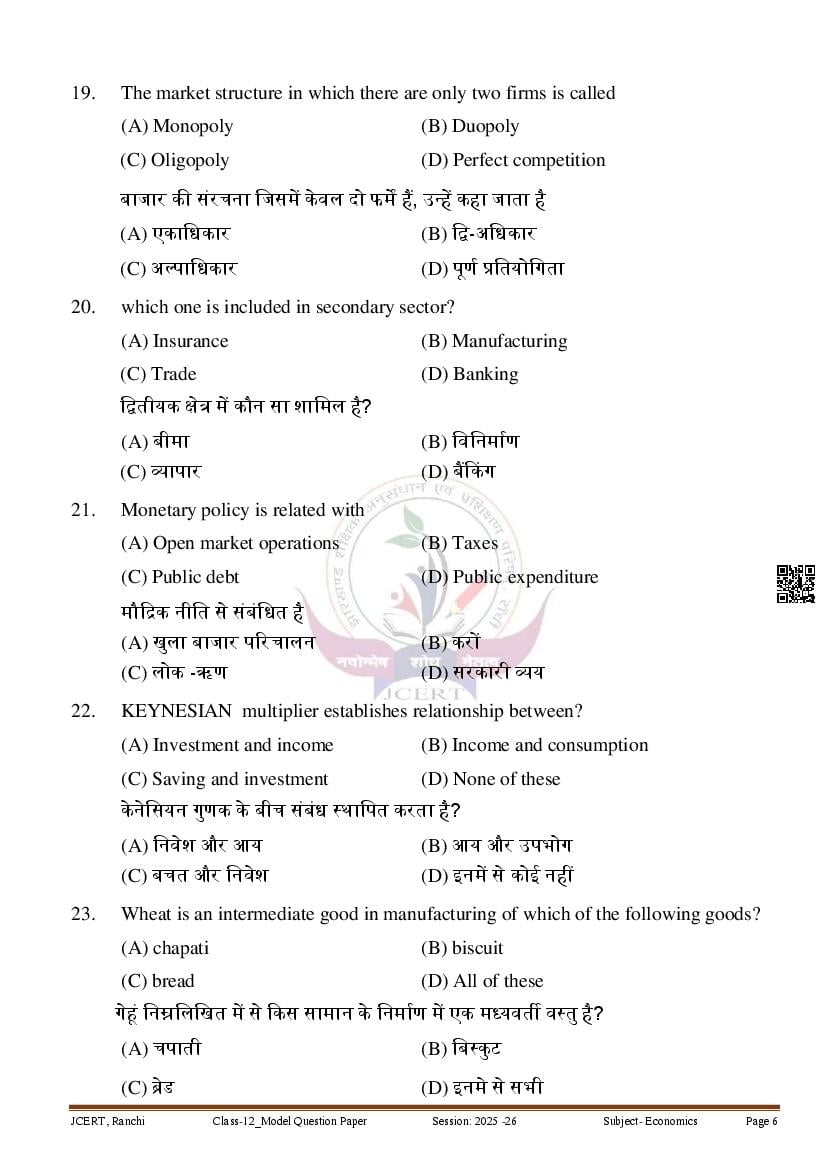 JAC Class 12 Model Question Paper 2026 Economics View Download