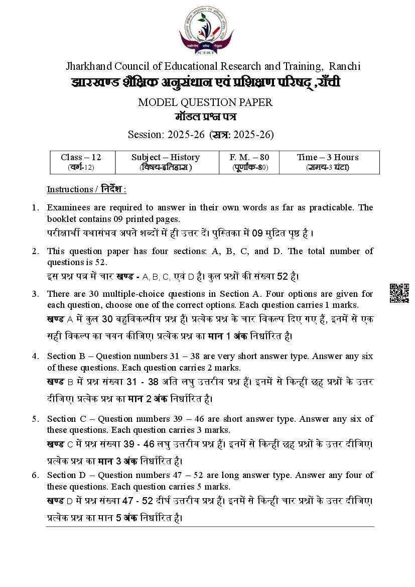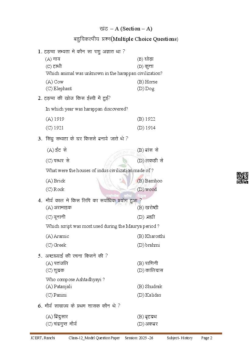 JAC 12th History Model Question Paper 2025 Download Link – Click Here to Download Paper PDF