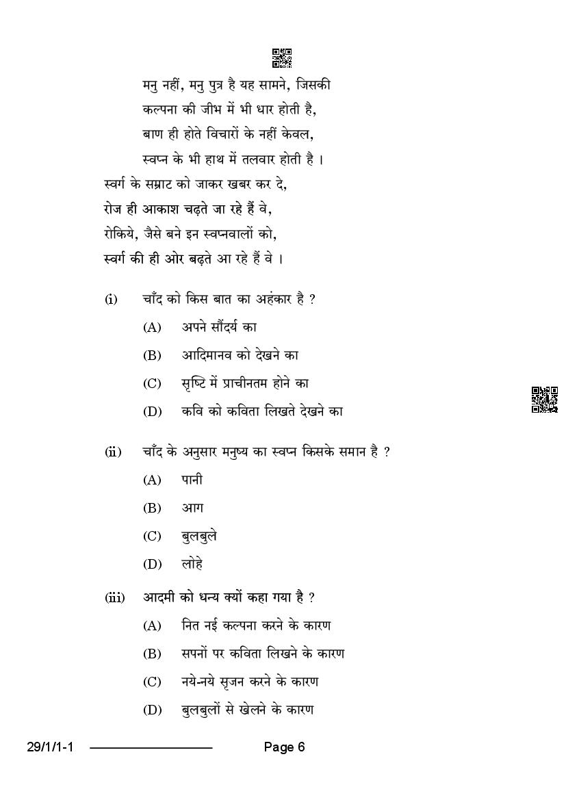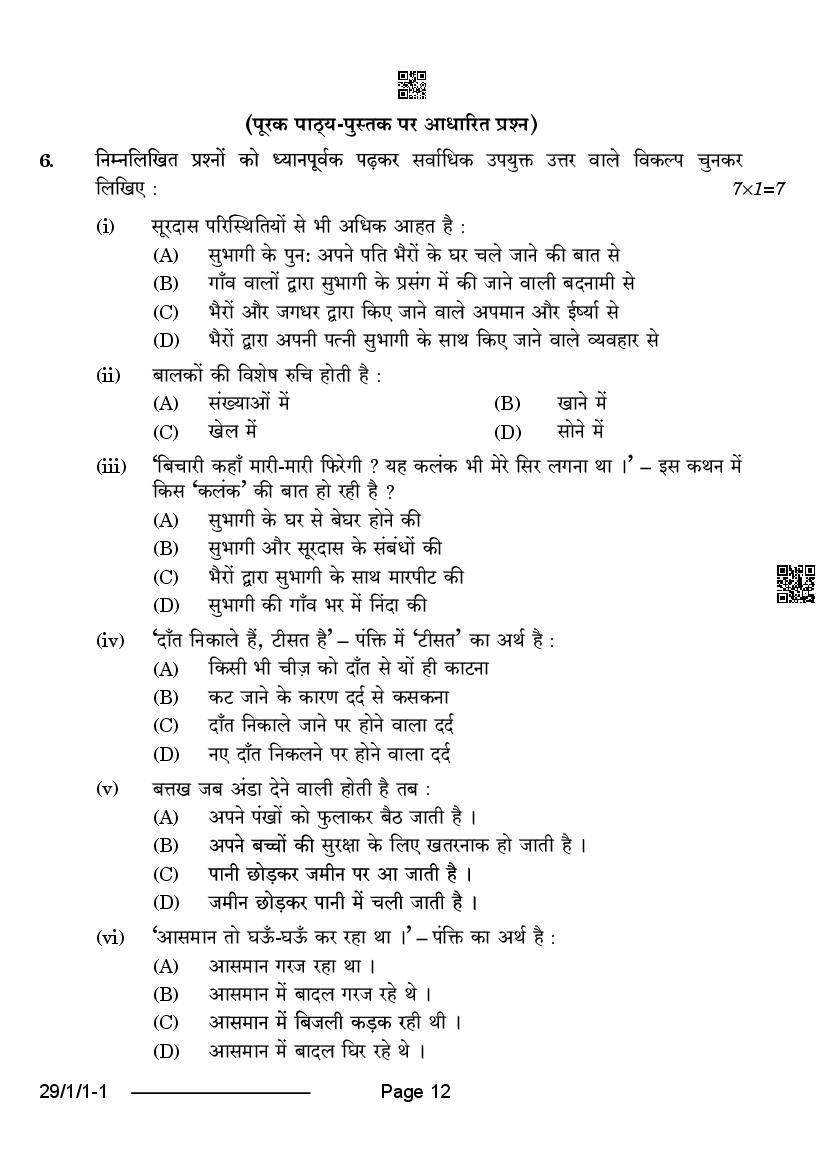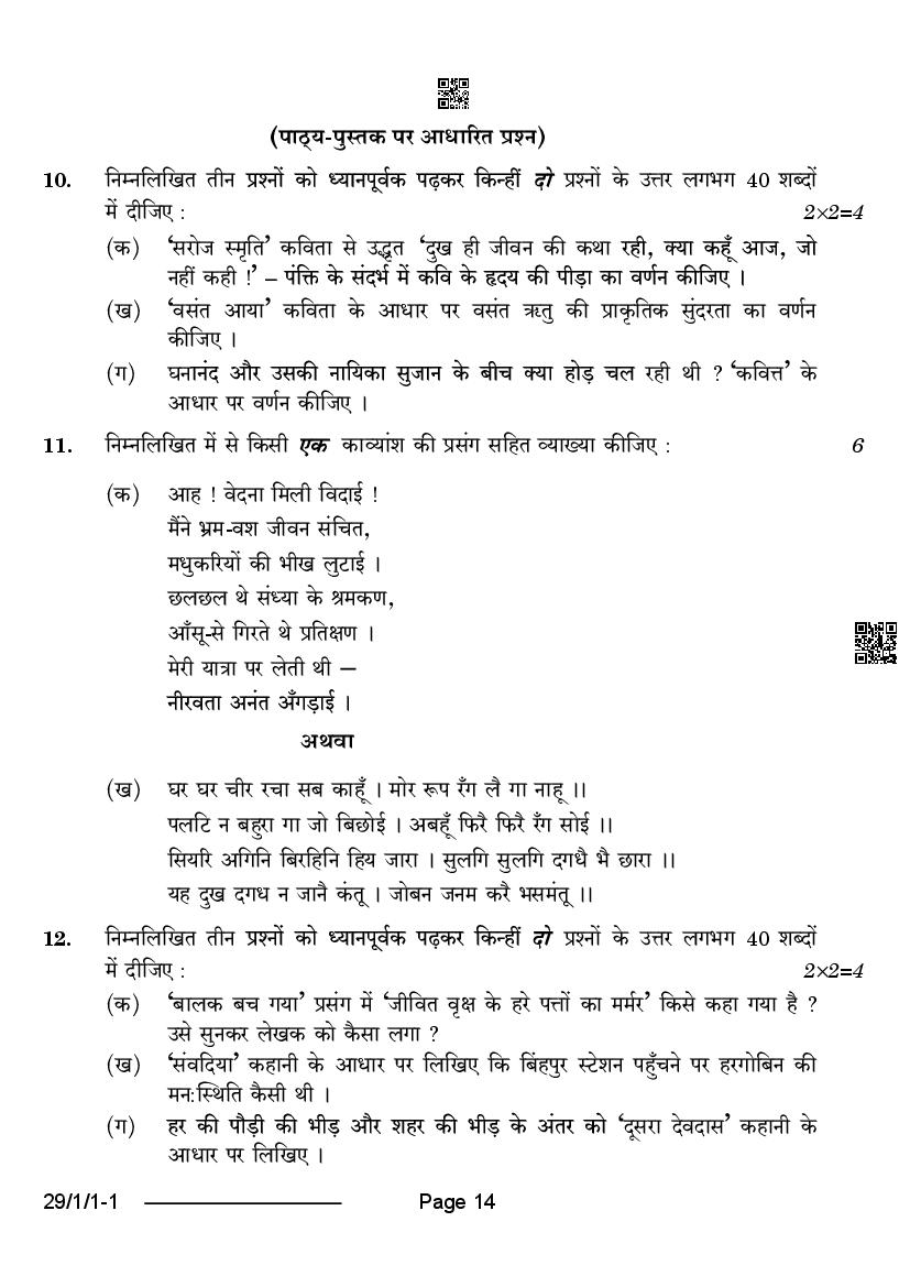 CBSE Class 12 Hindi Elective Question Paper 2024