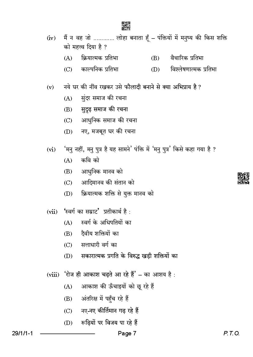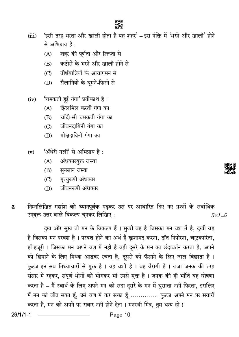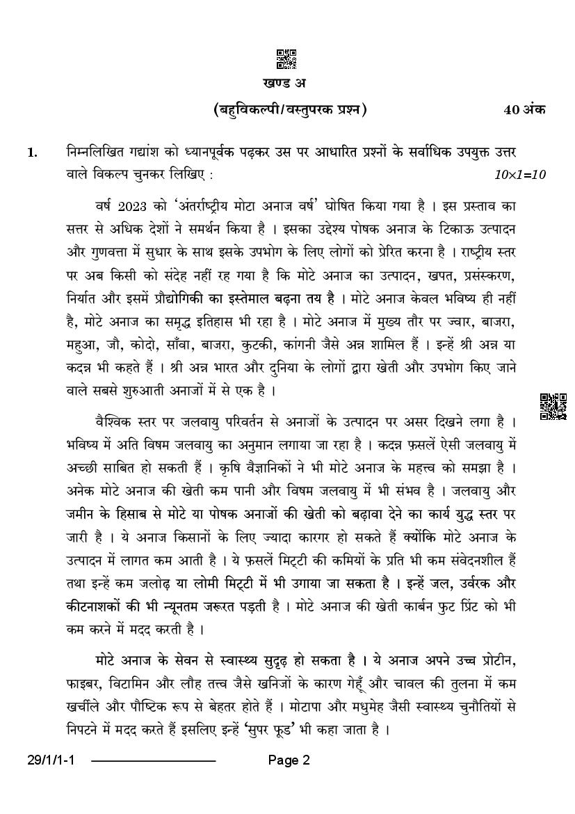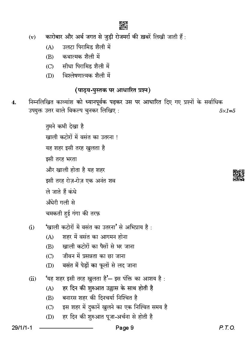 CBSE Class 12 Hindi Elective Question Paper 2024