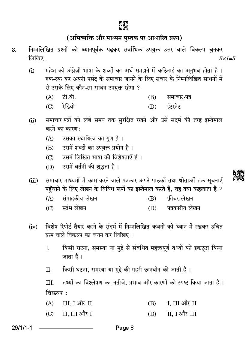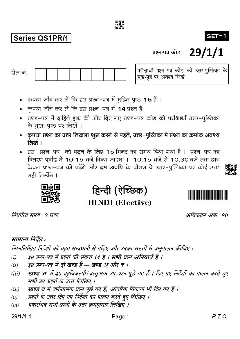 CBSE Class 12 Question Paper 2024 Hindi Elective View Download