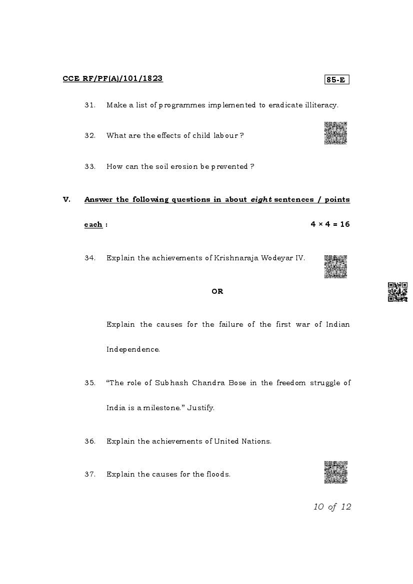 The Karnataka Board Question Paper of class 10th (SSLC) for Social Science is as follows.