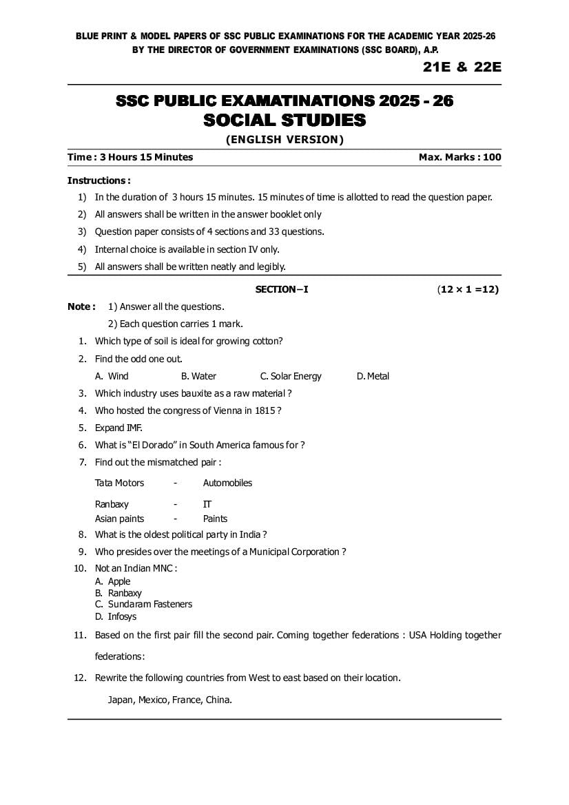 If you have any queries on AP 10th Class Social Studies Model Paper 2026, then please ask in comments below.