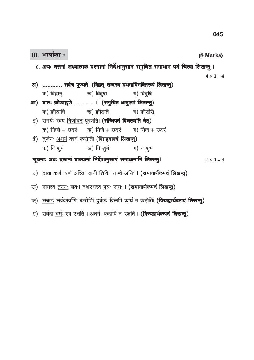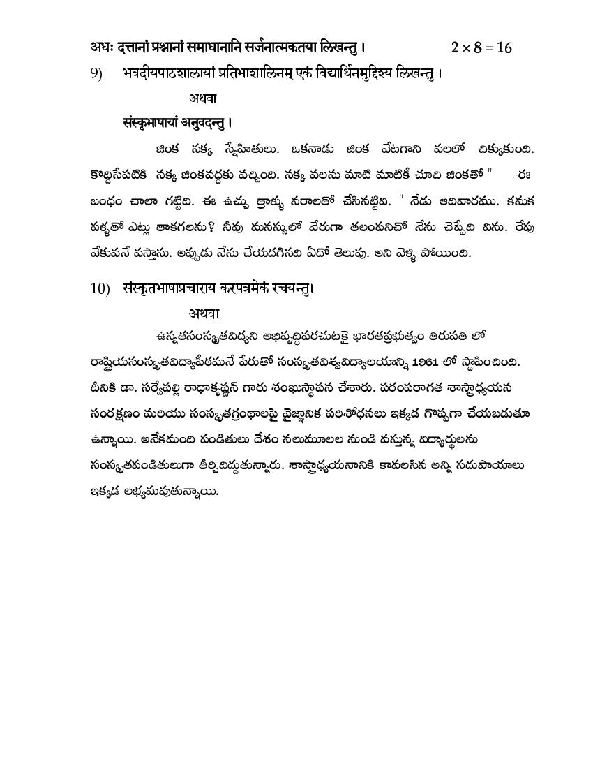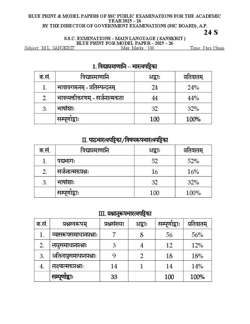 The AP Board Model Question Paper for class 10th (SSC) Sanskrit is as follows.