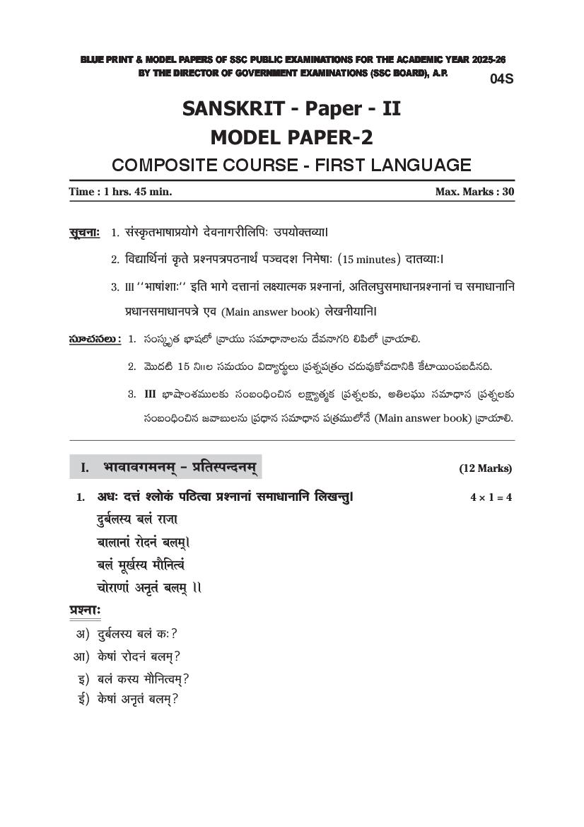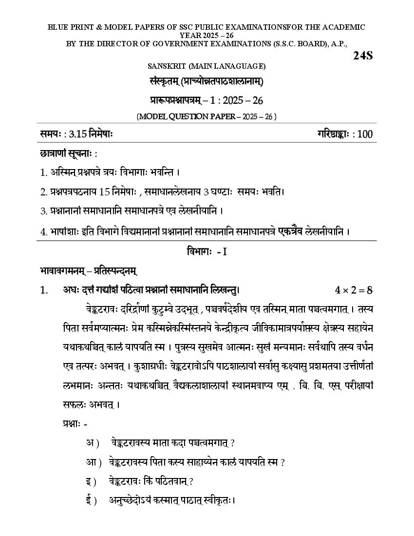 AP Class 10 Model Paper 2026 Sanskrit View Download