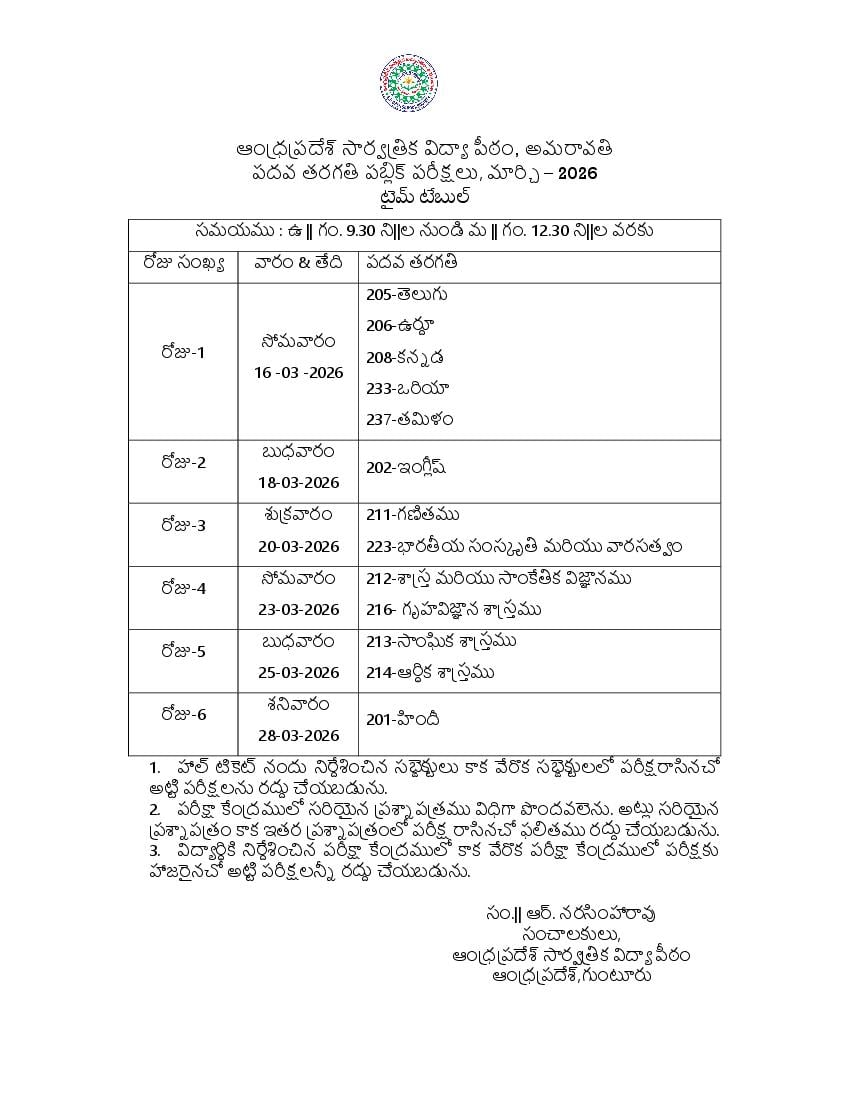 Latest: – APOSS SSC Time Table 2026 has been released. Scroll down to check the complete time table.