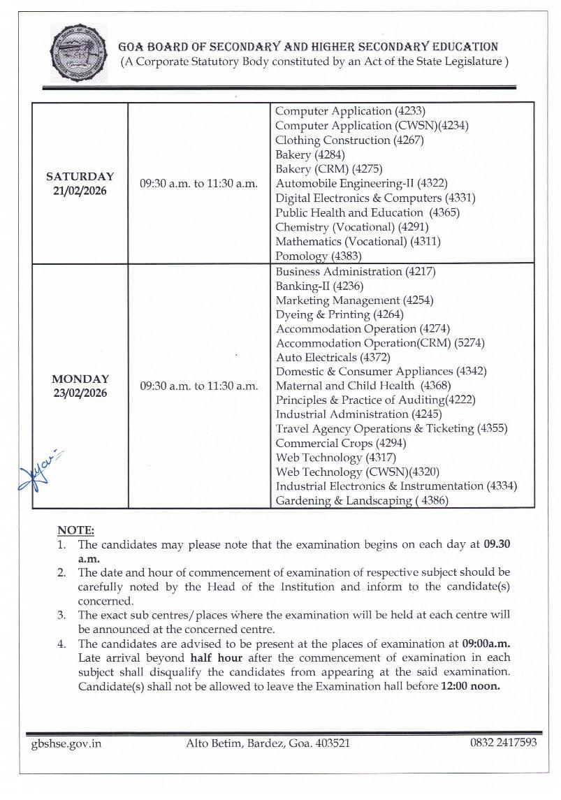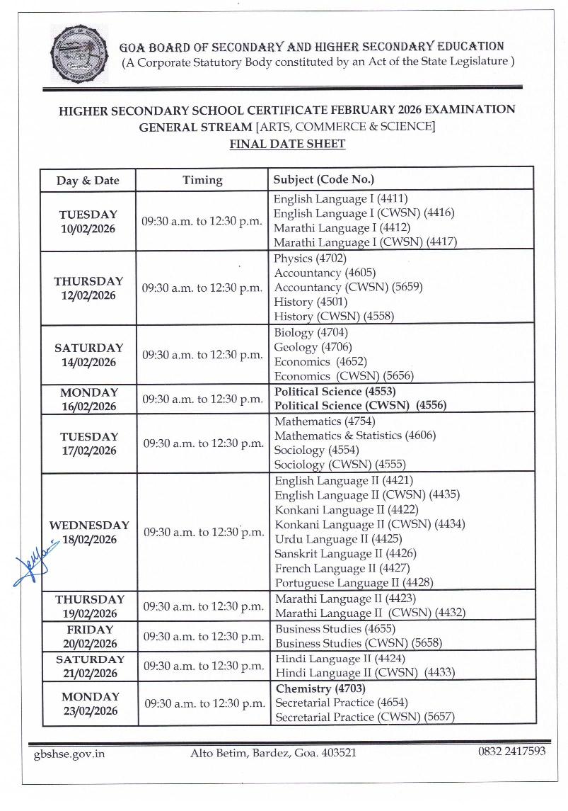 Latest: – Goa HSSC Time Table 2026 has been released. Scroll down to check the complete time table.