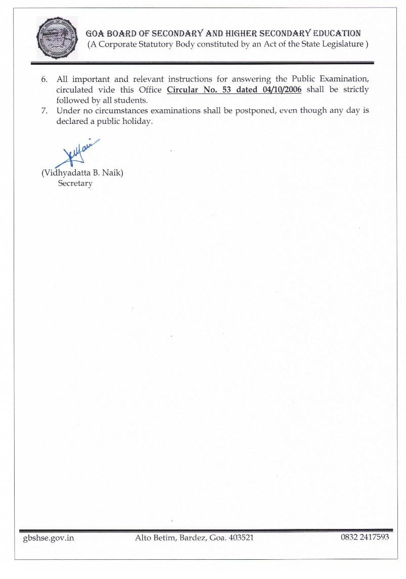 All datesheets of Goa Board are as follows.