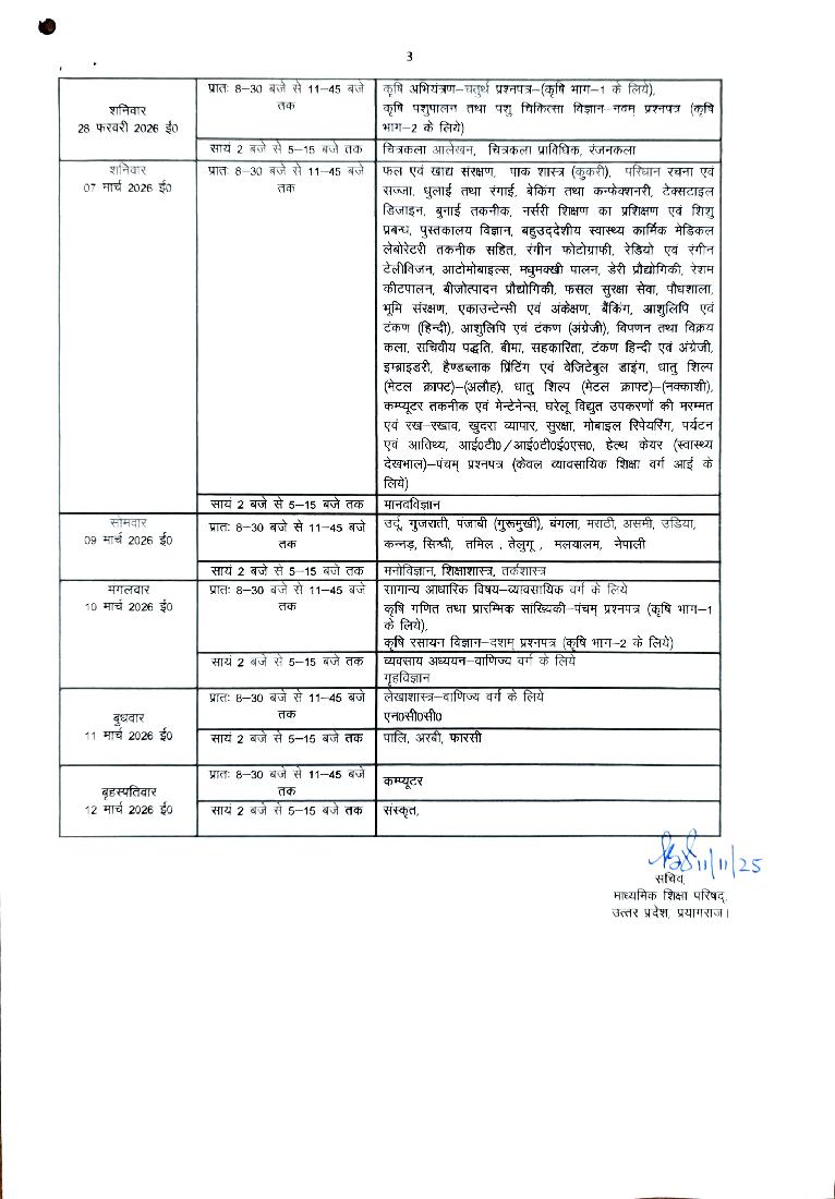 Latest: – UP Board 12th Time Table 2026 has been released. Scroll down to check the complete time table.
