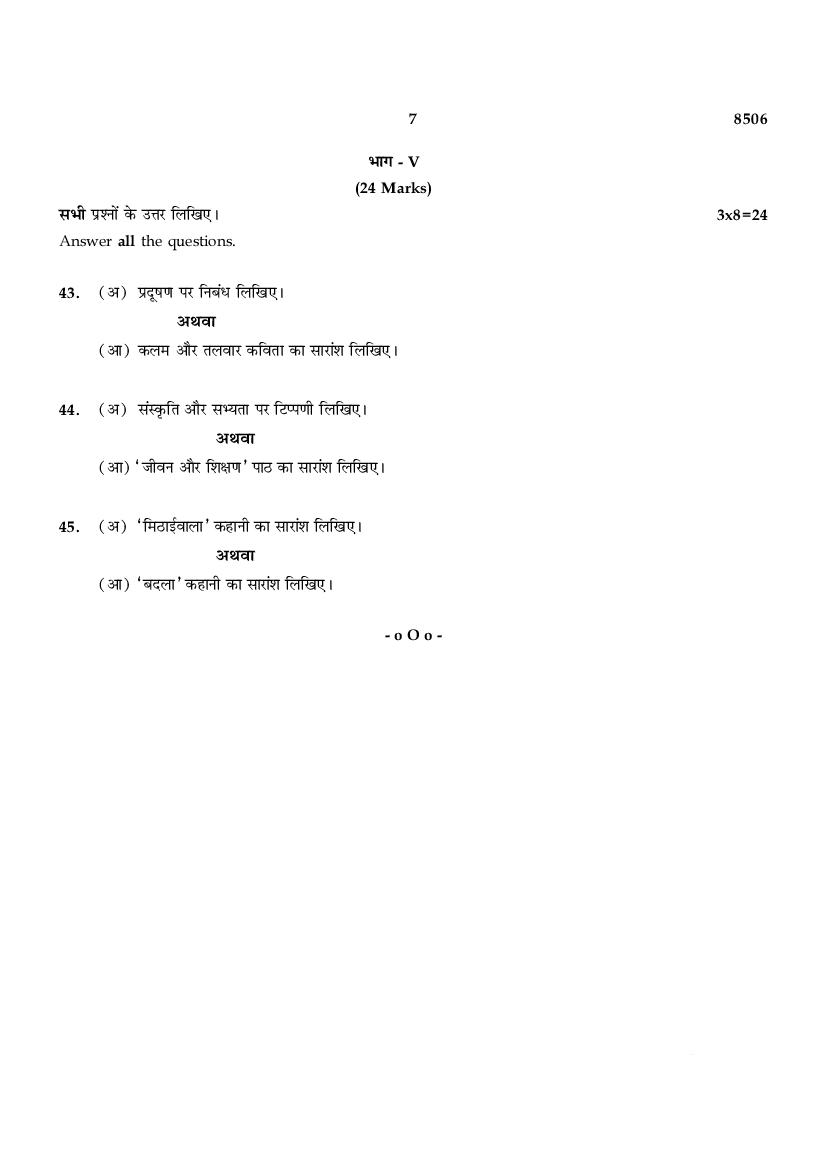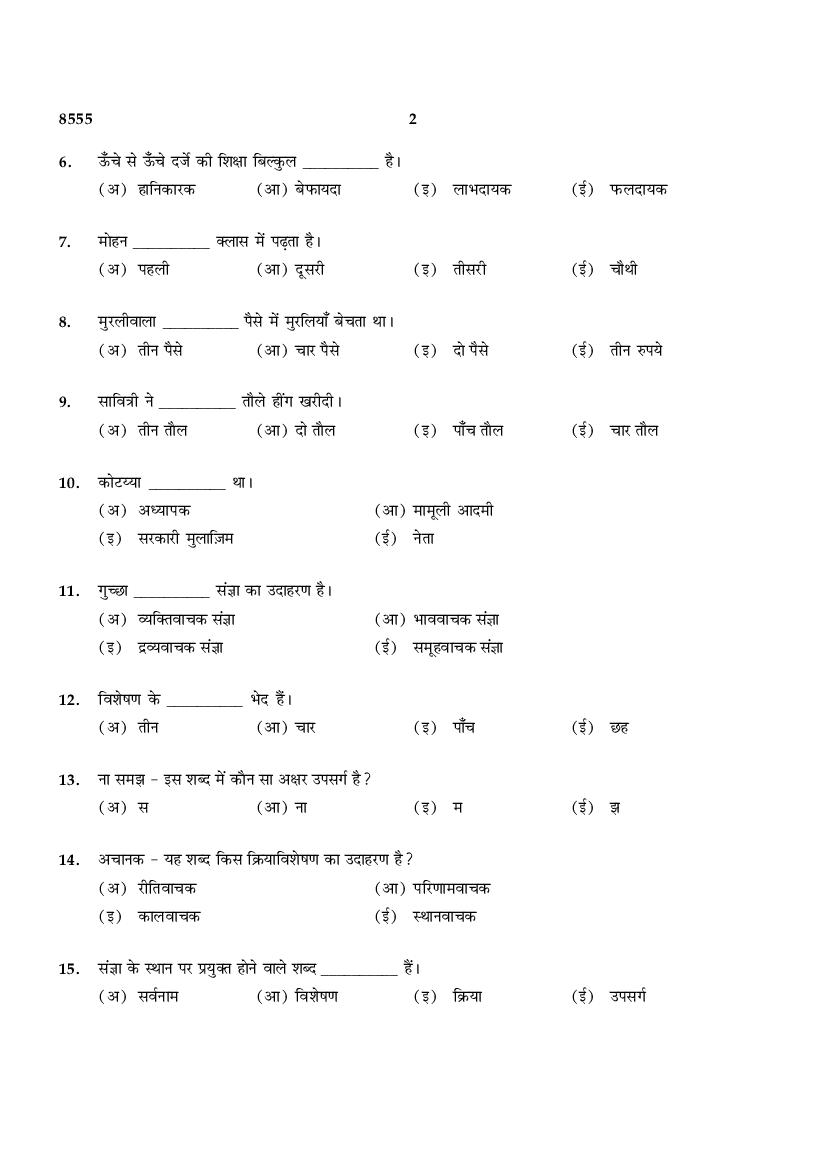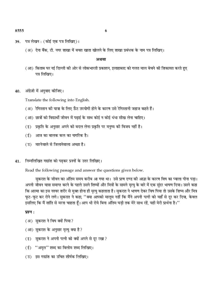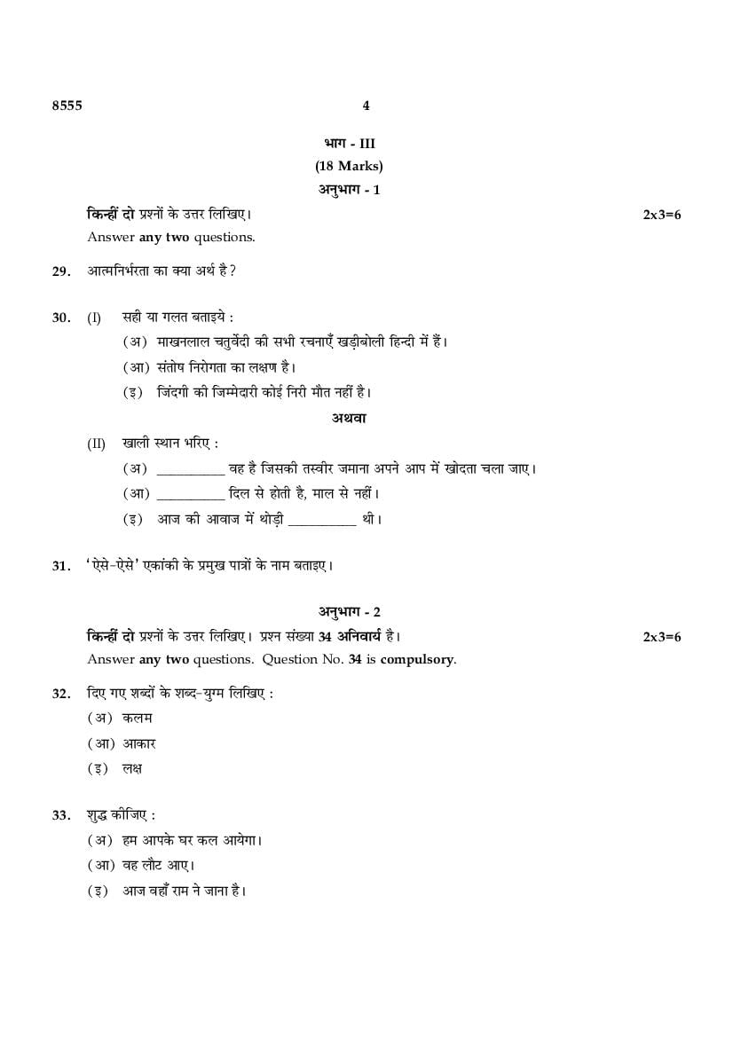 The TN Board Previous Year Question Paper for SSLC (Class 10) Hindi is as follows.