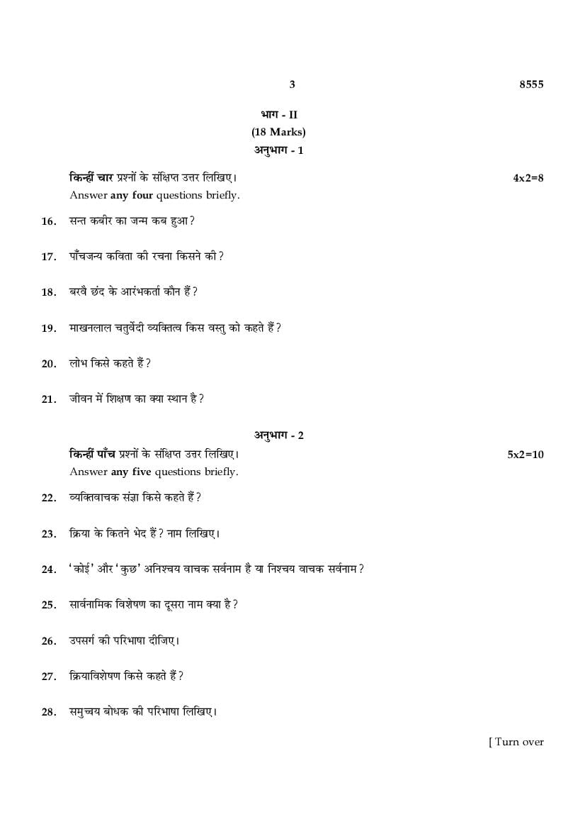 While you can easily download the TN 10th Hindi previous year question paper from link above. Similarly you can study the complete Hindi question paper here also. The entire SSLC question paper is as follows.