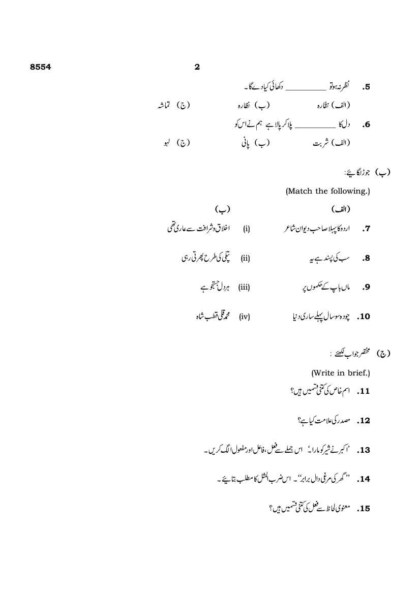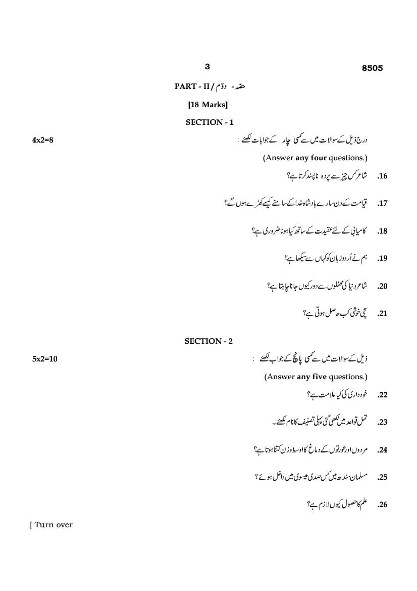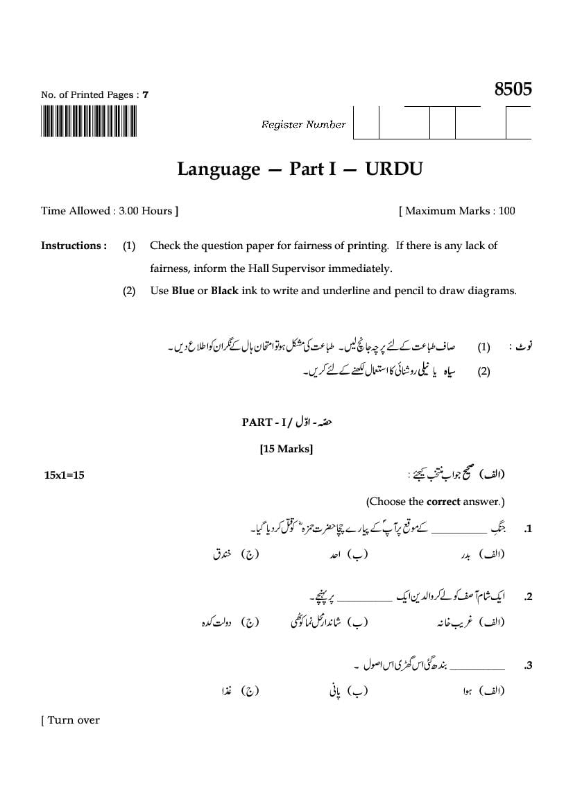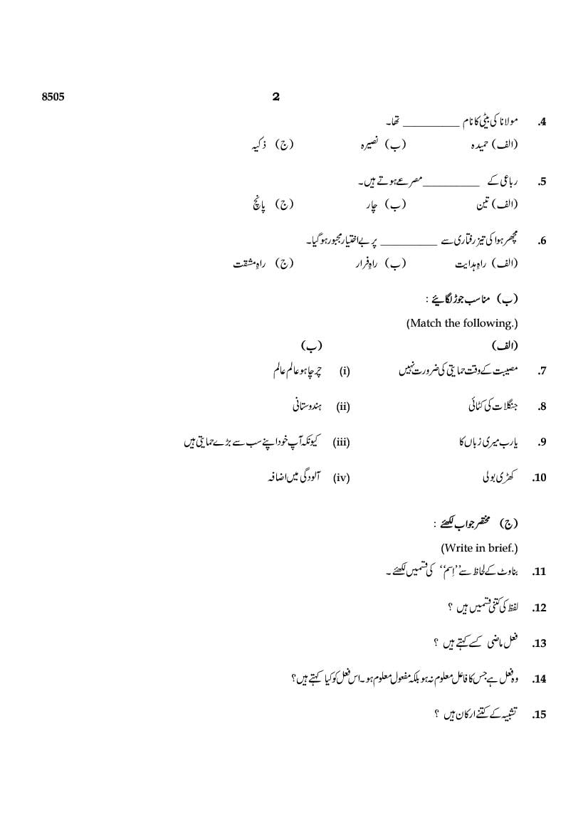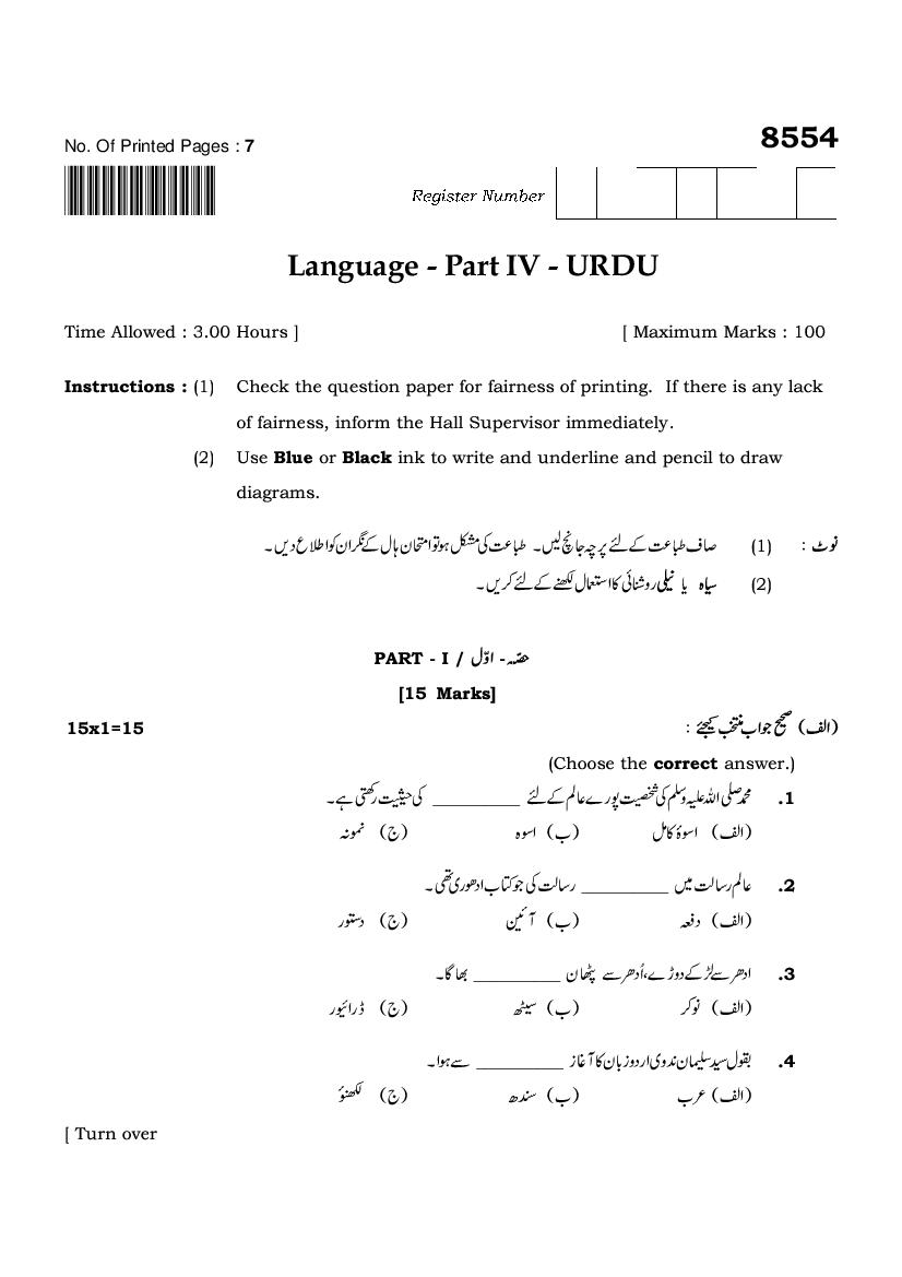 The TN Board Previous Year Question Paper for SSLC (Class 10) Urdu is as follows.