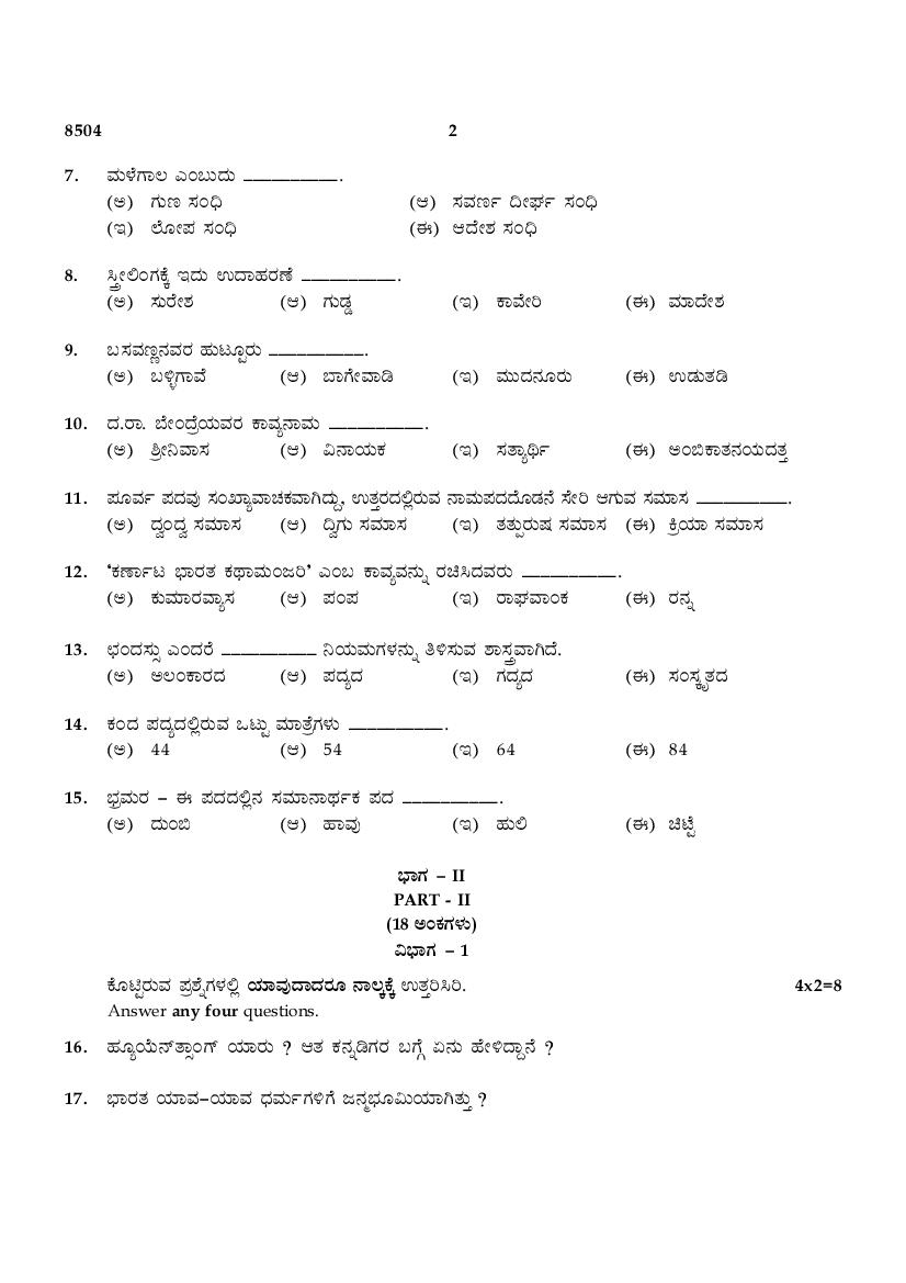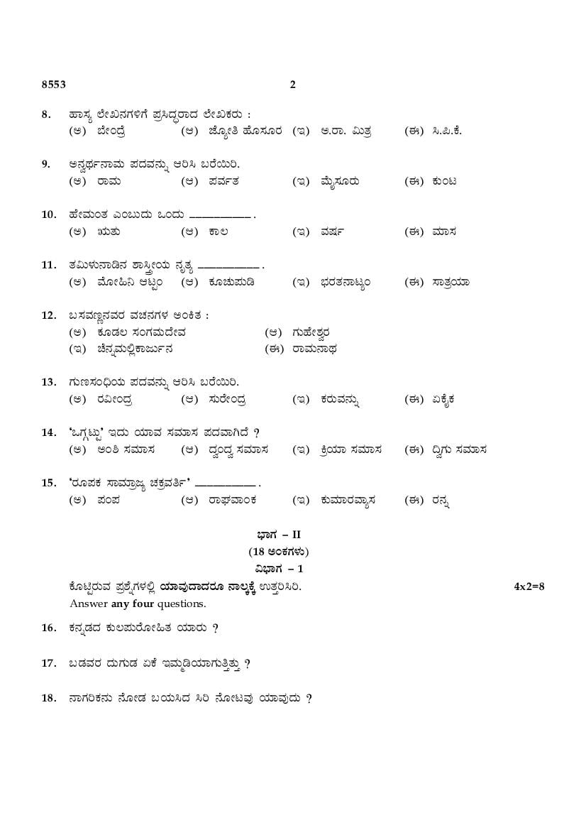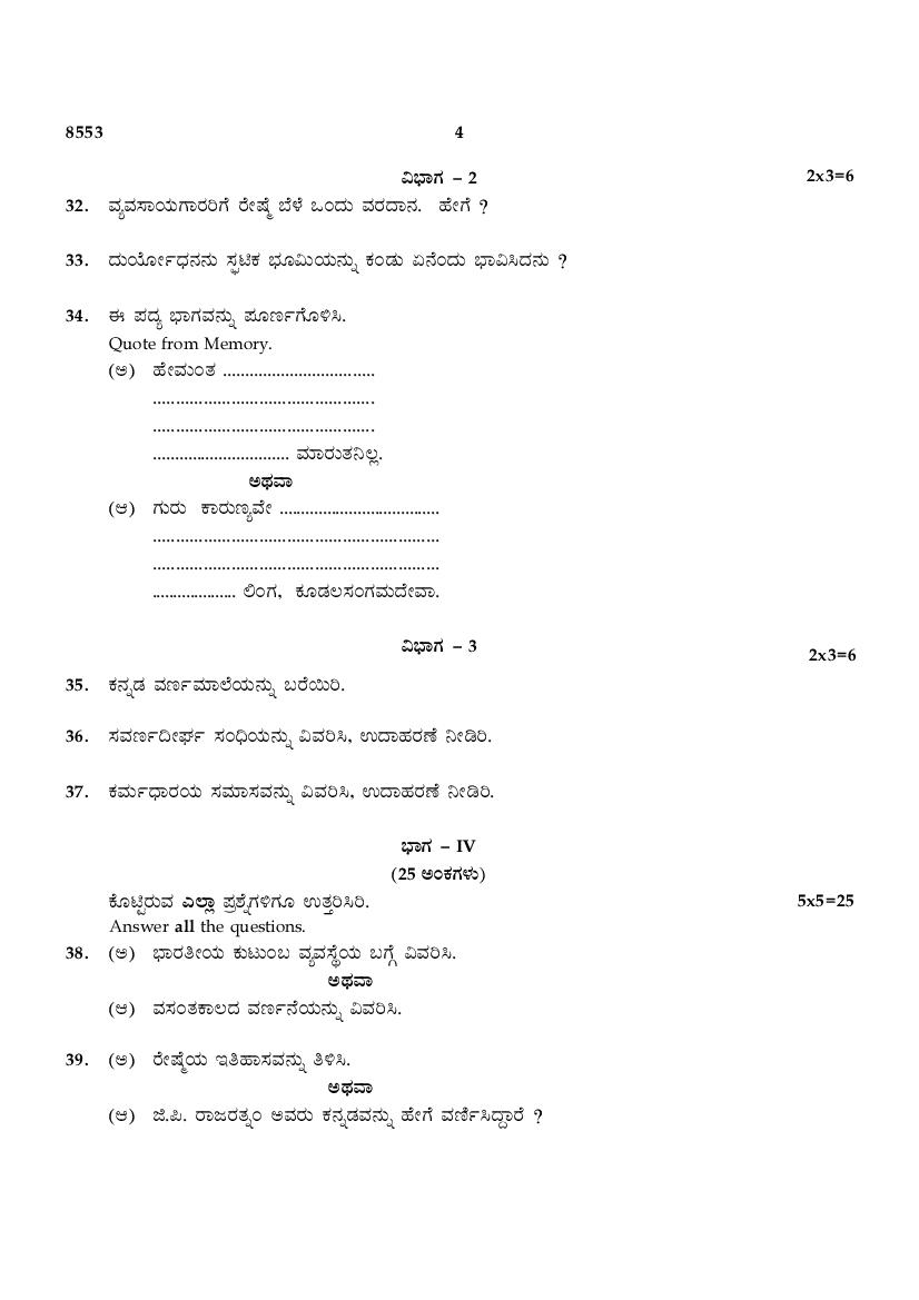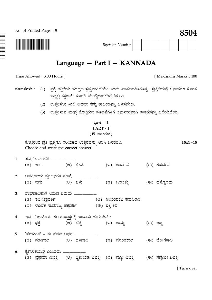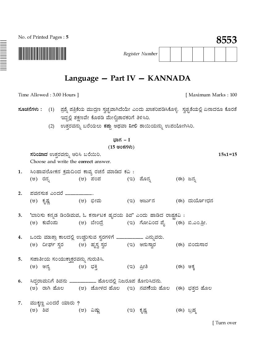 The TN Board Previous Year Question Paper for SSLC (Class 10) Kannada is as follows.