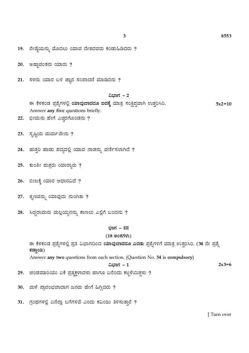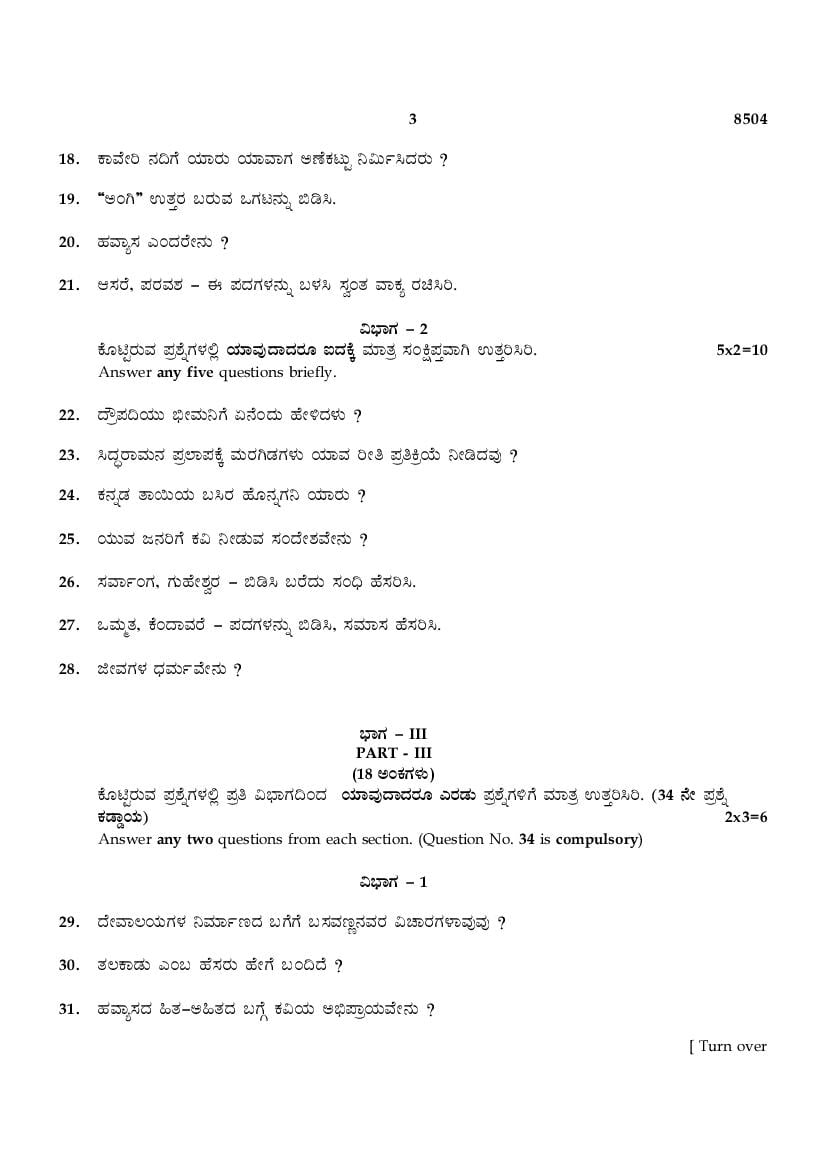 While you can easily download the TN 10th Kannada previous year question paper from link above. Similarly you can study the complete Kannada question paper here also. The entire SSLC question paper is as follows.