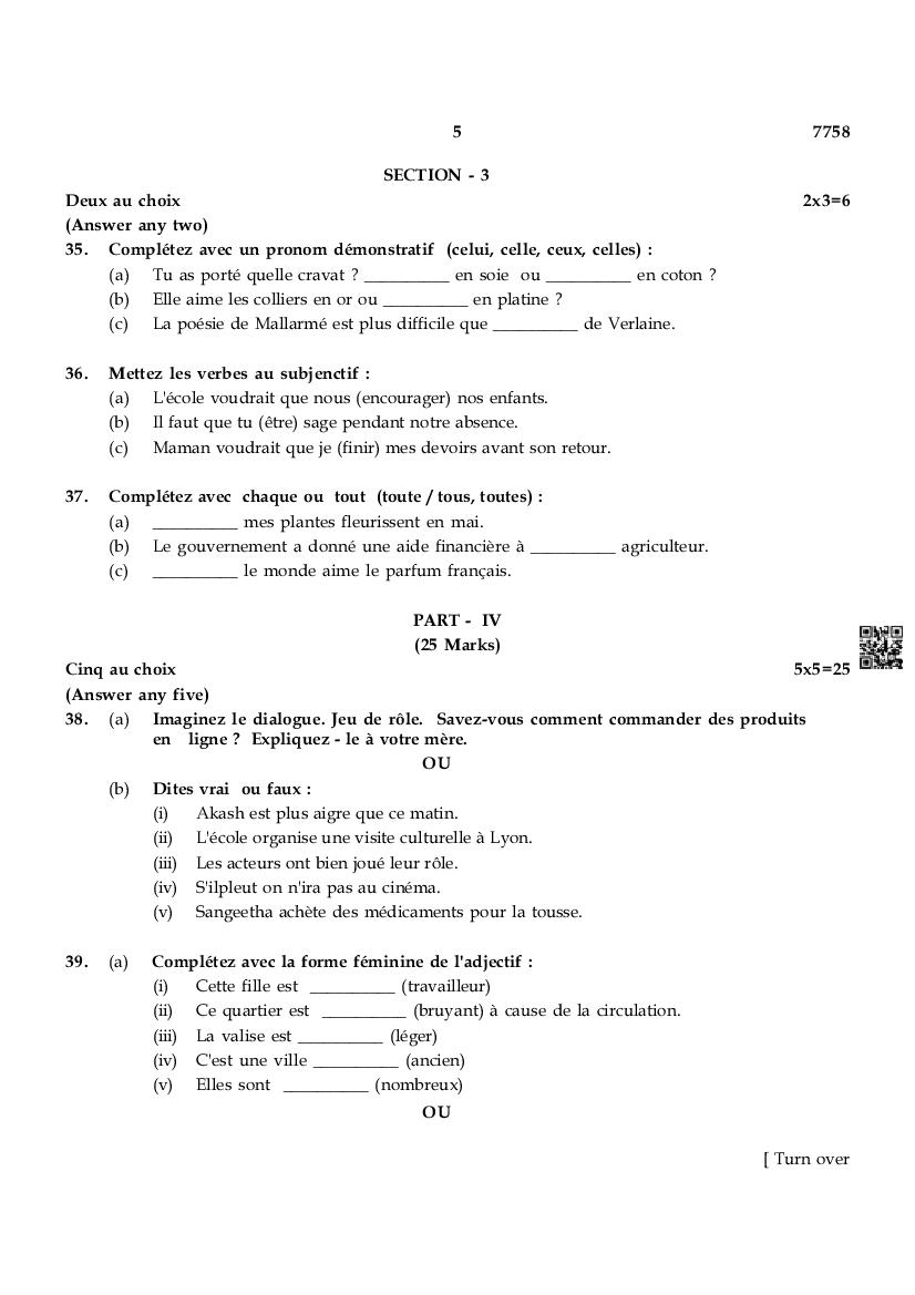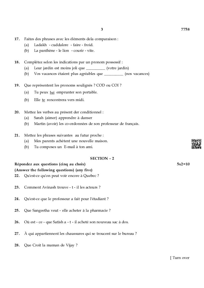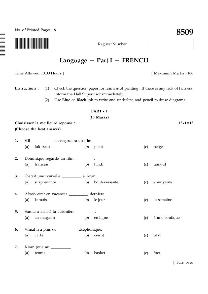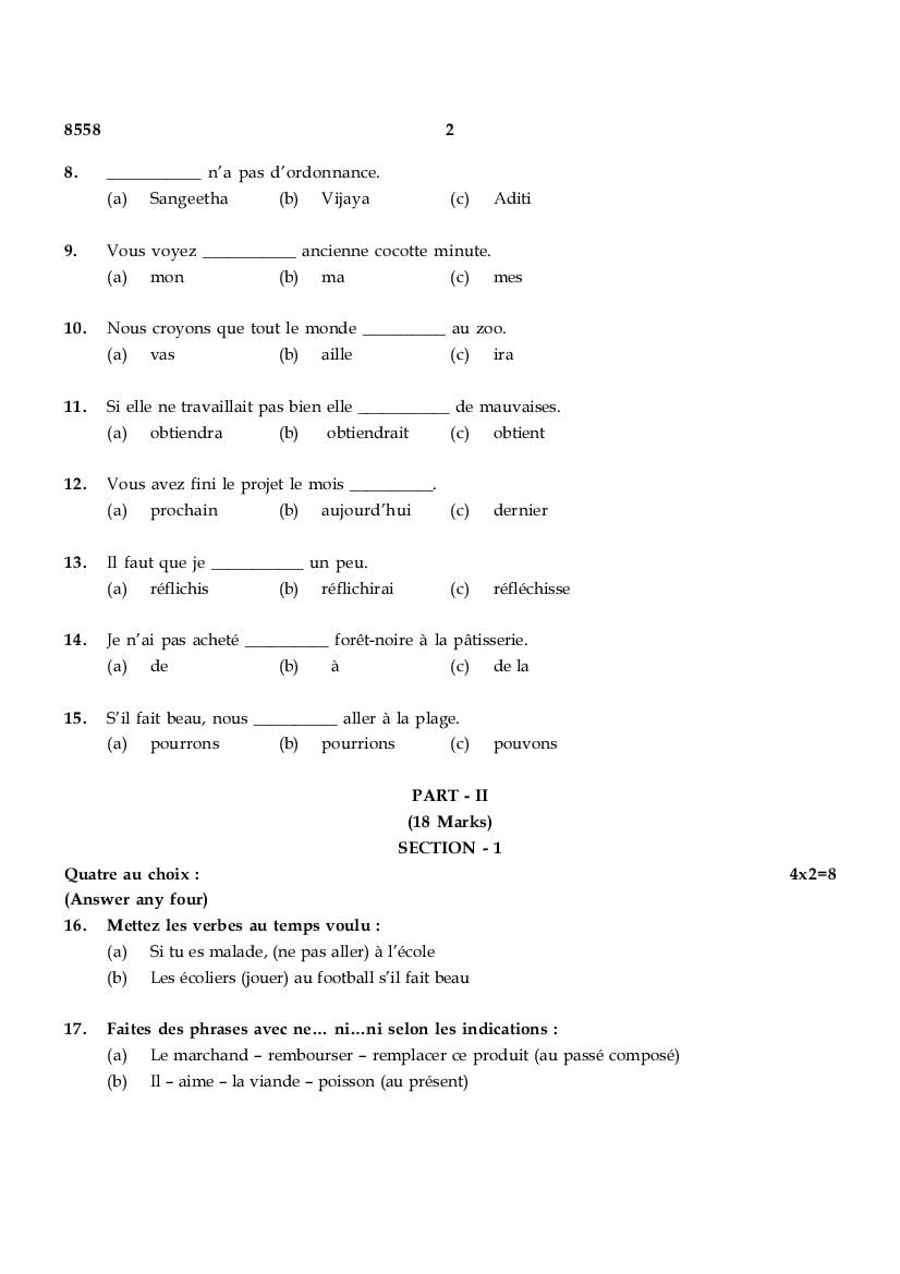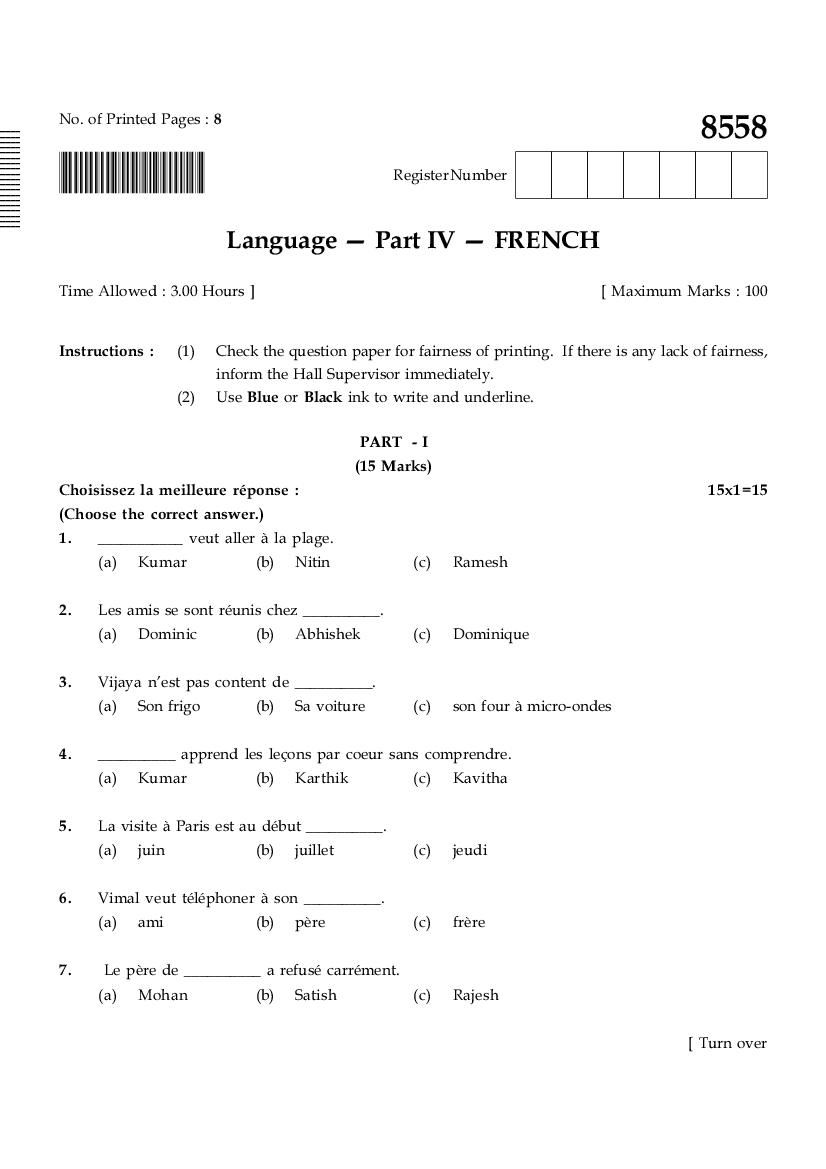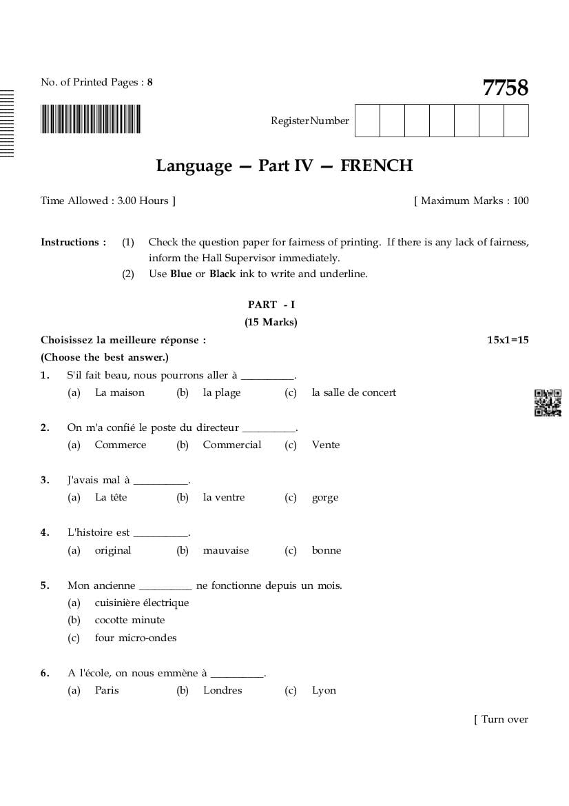 While you can easily download the TN 10th French previous year question paper from link above. Similarly you can study the complete French question paper here also. The entire SSLC question paper is as follows.
