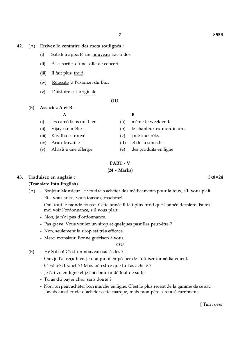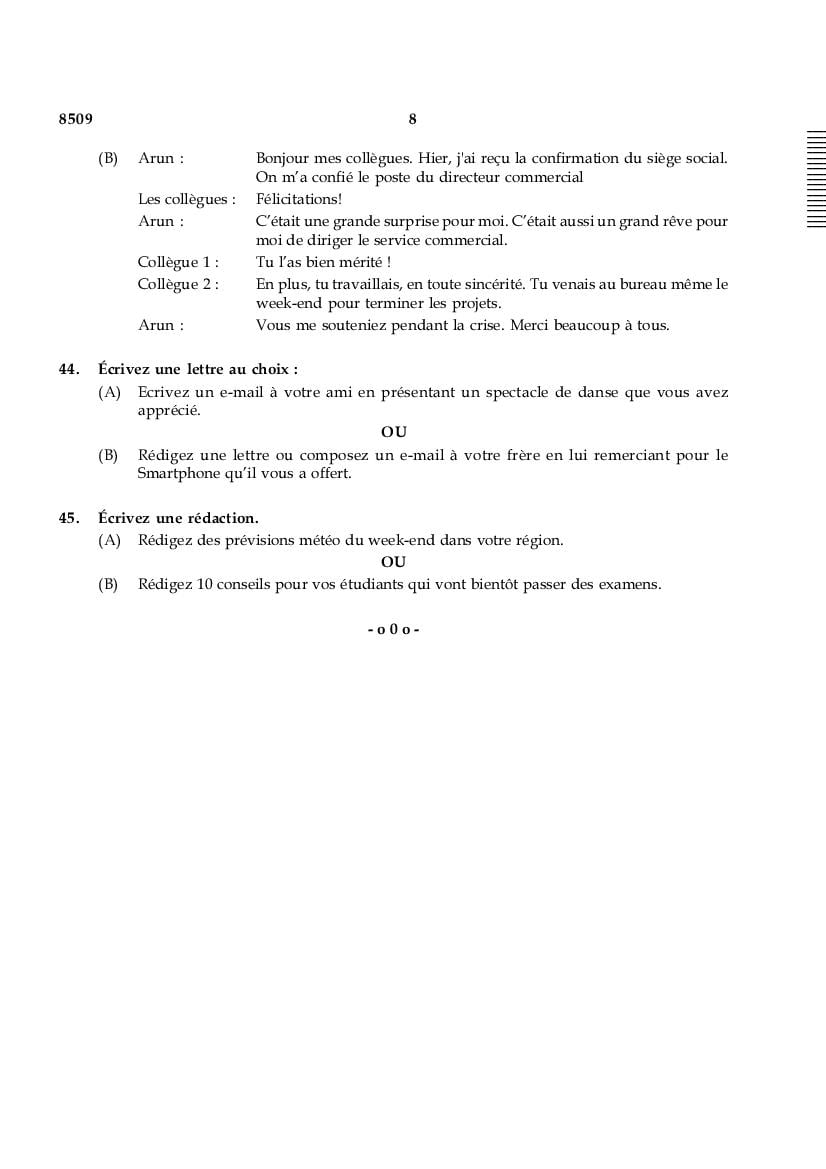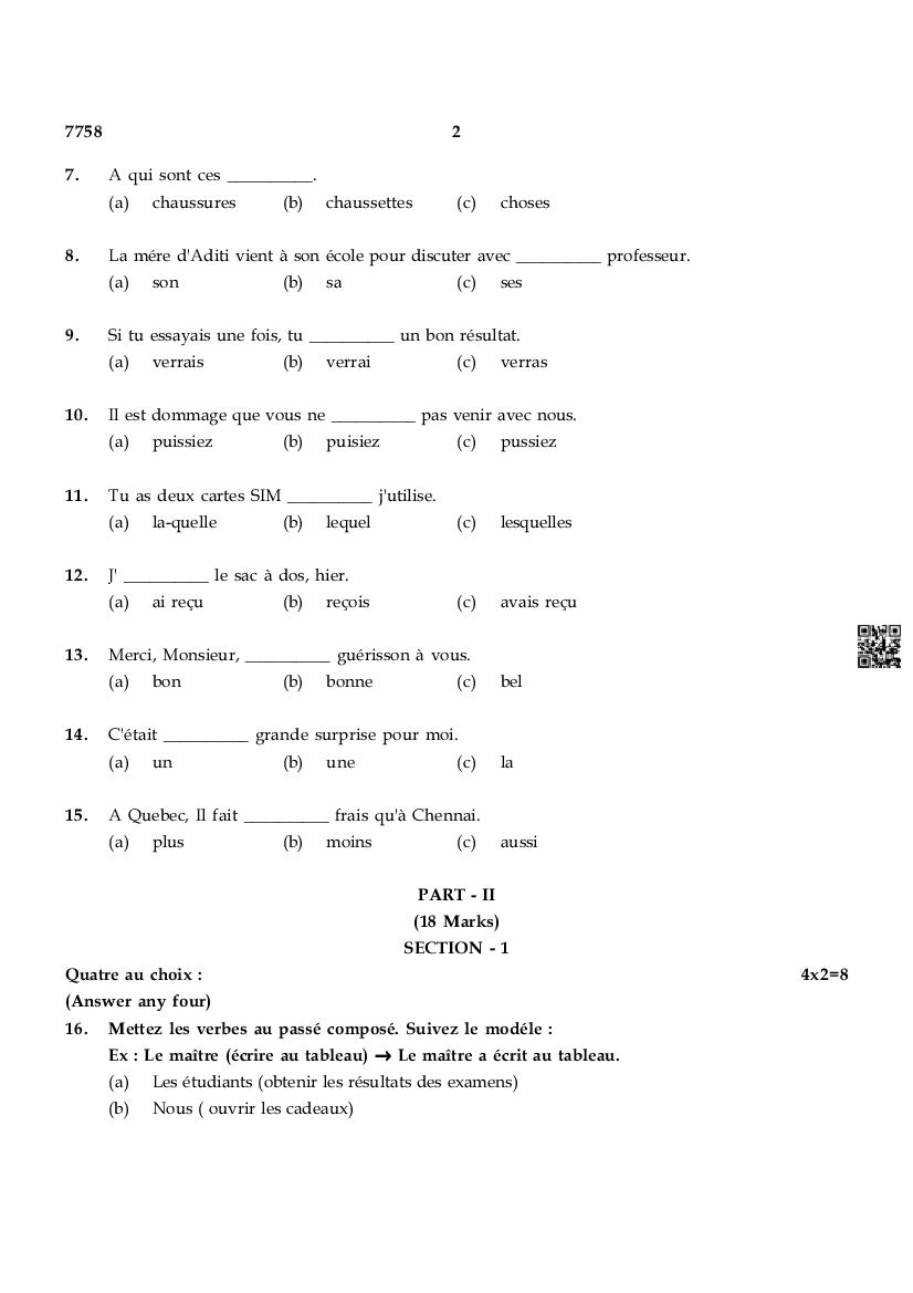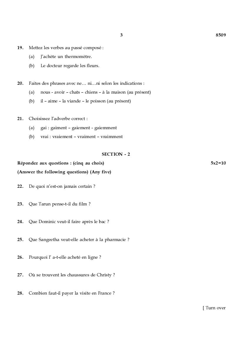 The TN Board Previous Year Question Paper for SSLC (Class 10) French is as follows.