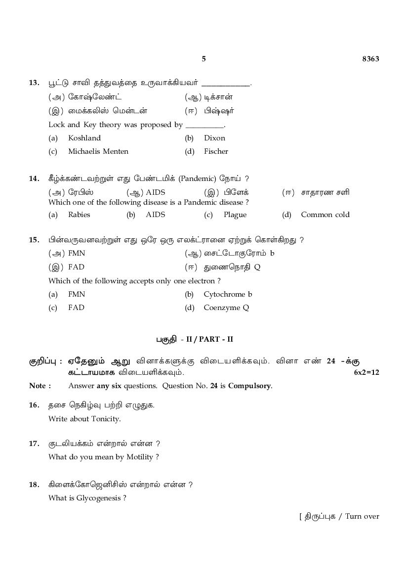 | Educational Resource Here | Tamil Nadu Board Previous Year Question Paper of Class 12 Bio Chemistry |