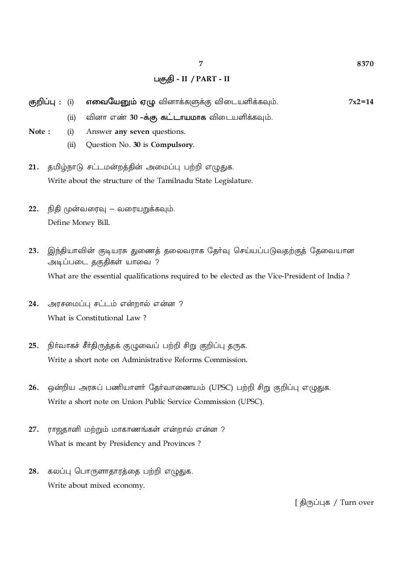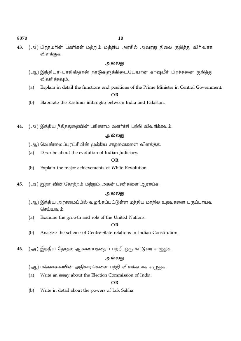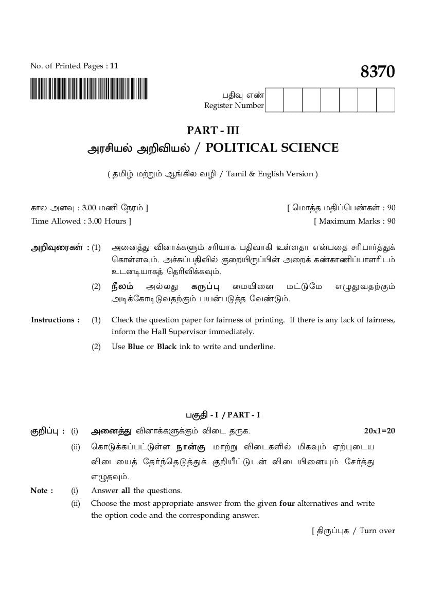 The TN Board Previous Year Question Paper for HSE (+2) (Class 12) Political Science is as follows.