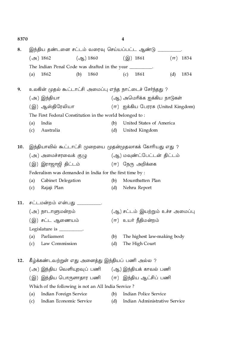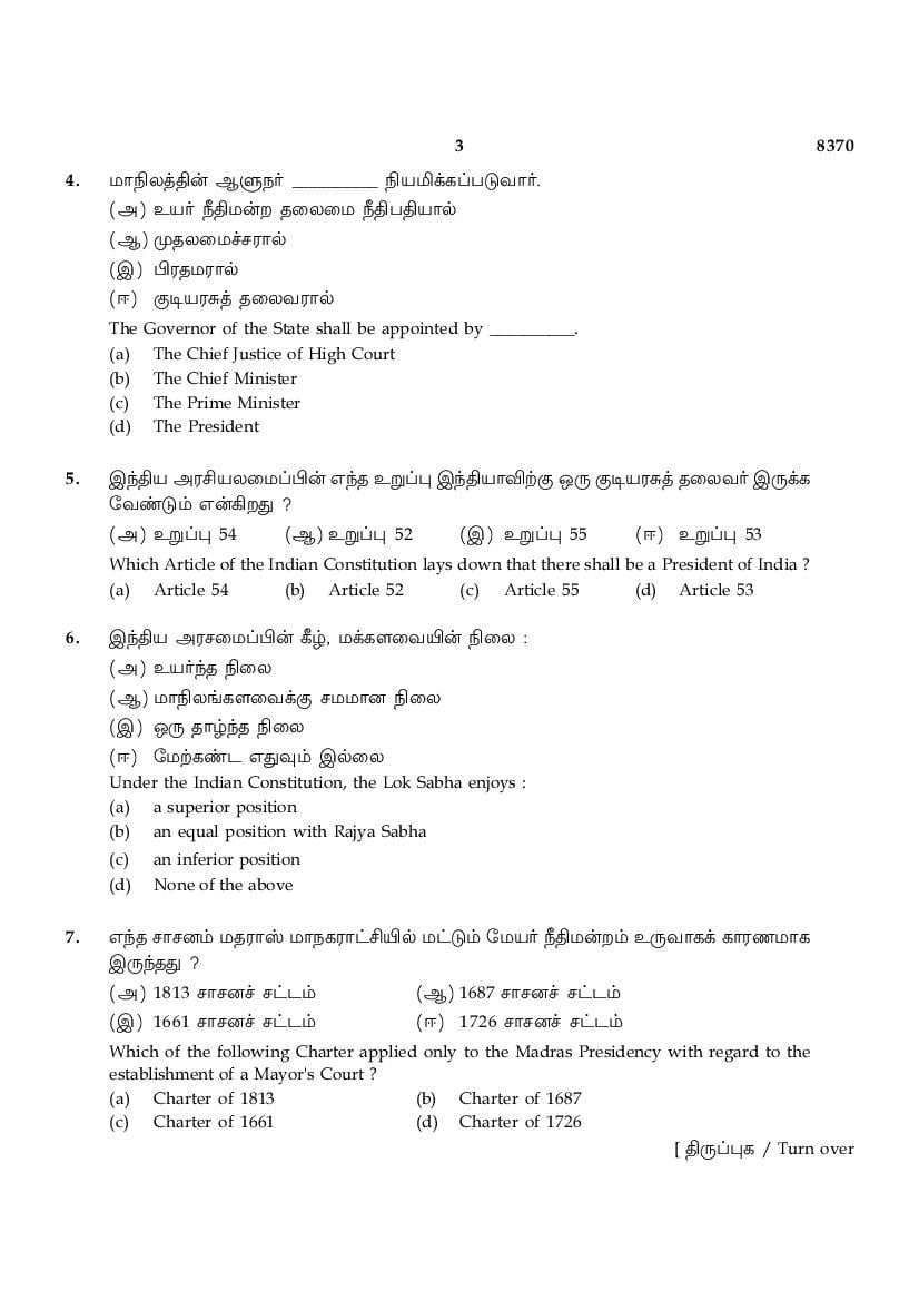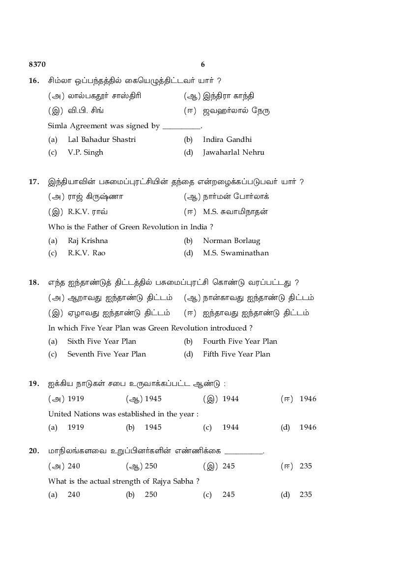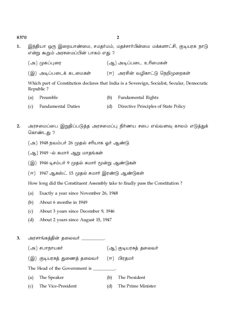 The TN Board Previous Year Question Paper for HSE (+2) (Class 12) Political Science is as follows.