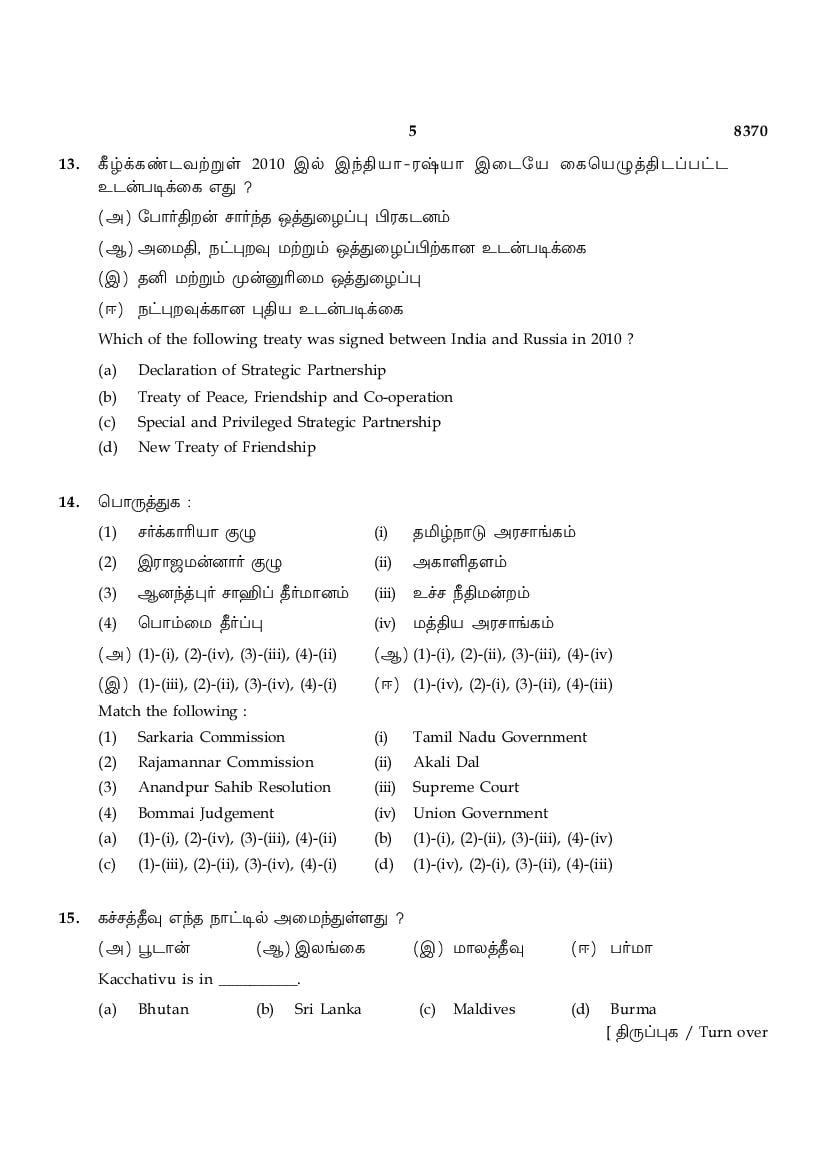 Tamil Nadu Board Previous Year Question Papers