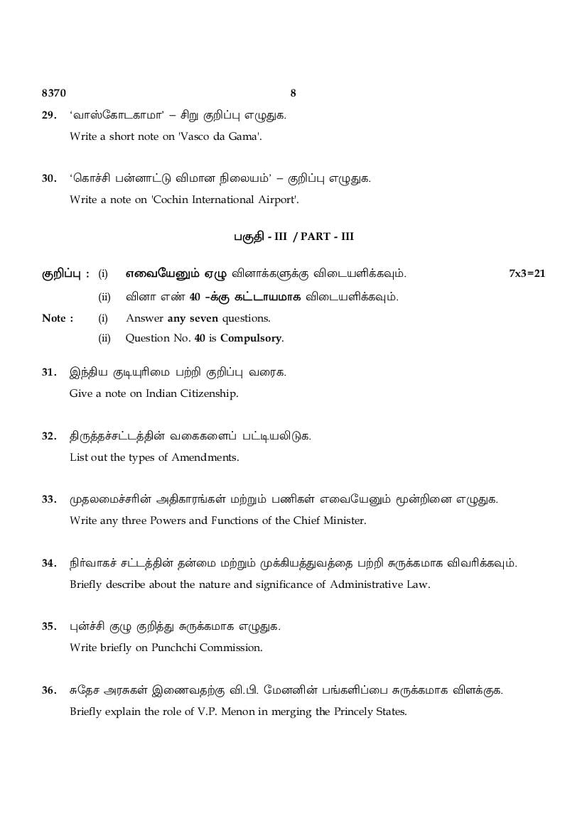 | Educational Resource Here | Tamil Nadu Board Previous Year Question Paper of Class 12 Political Science |
