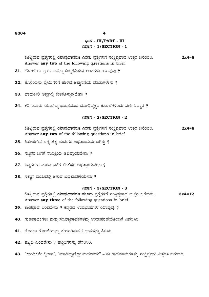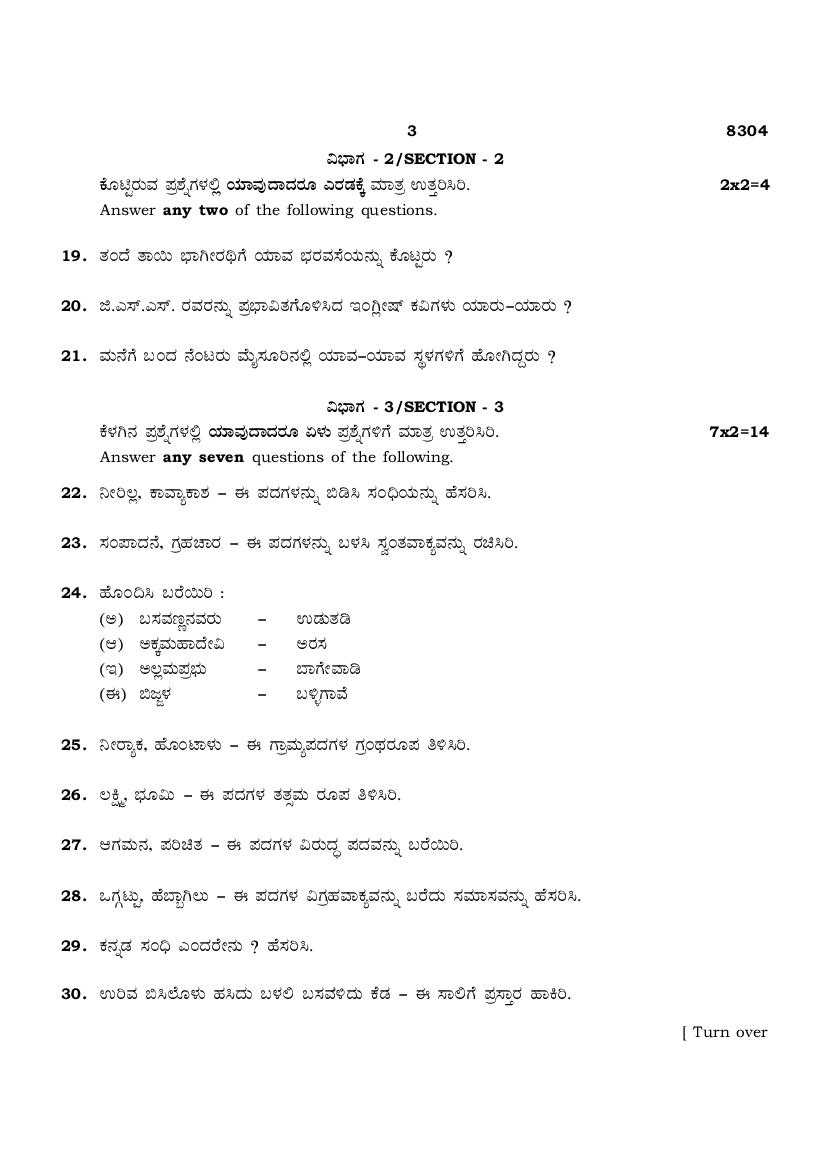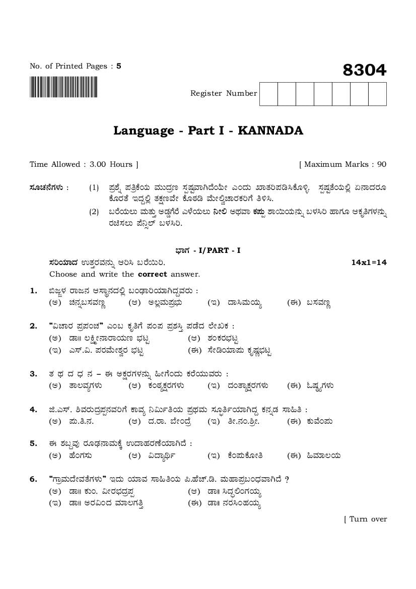 While you can easily download the TN 12th Kannada previous year question paper from link above. Similarly you can study the complete Kannada question paper here also. The entire HSE (+2) question paper is as follows.