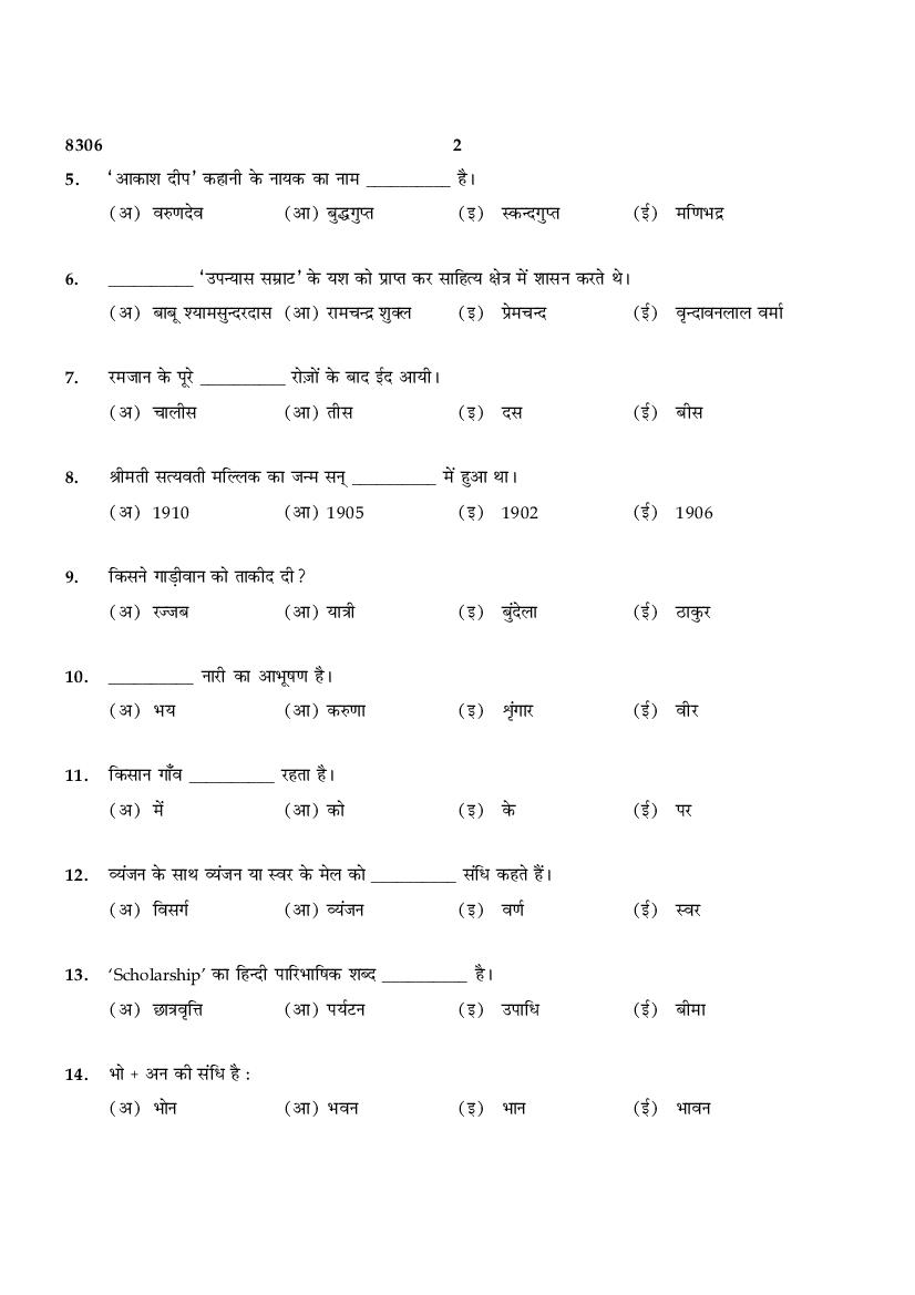 The TN Board Previous Year Question Paper for HSE (+2) (Class 12) Hindi is as follows.