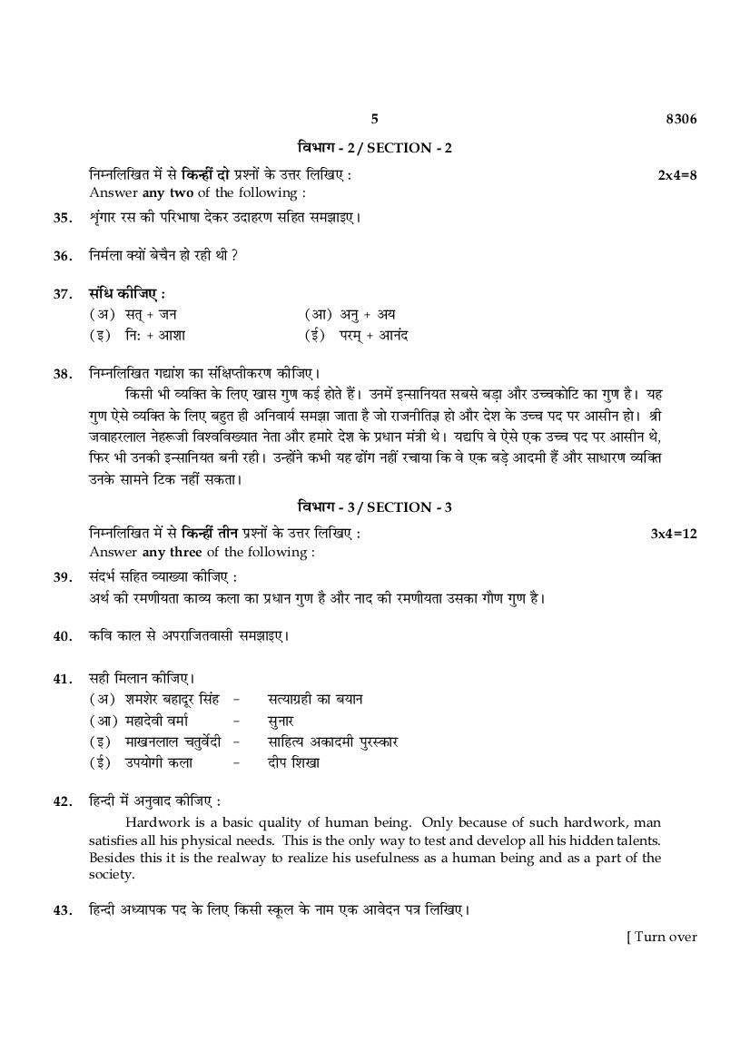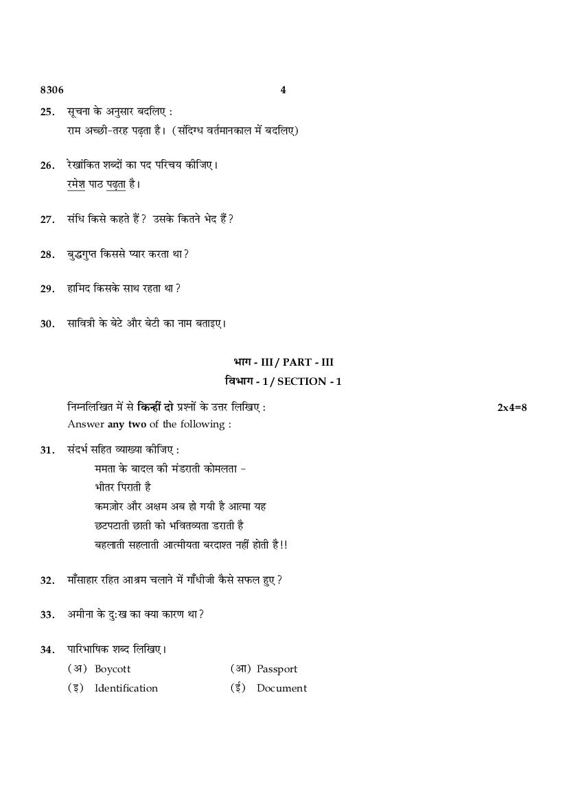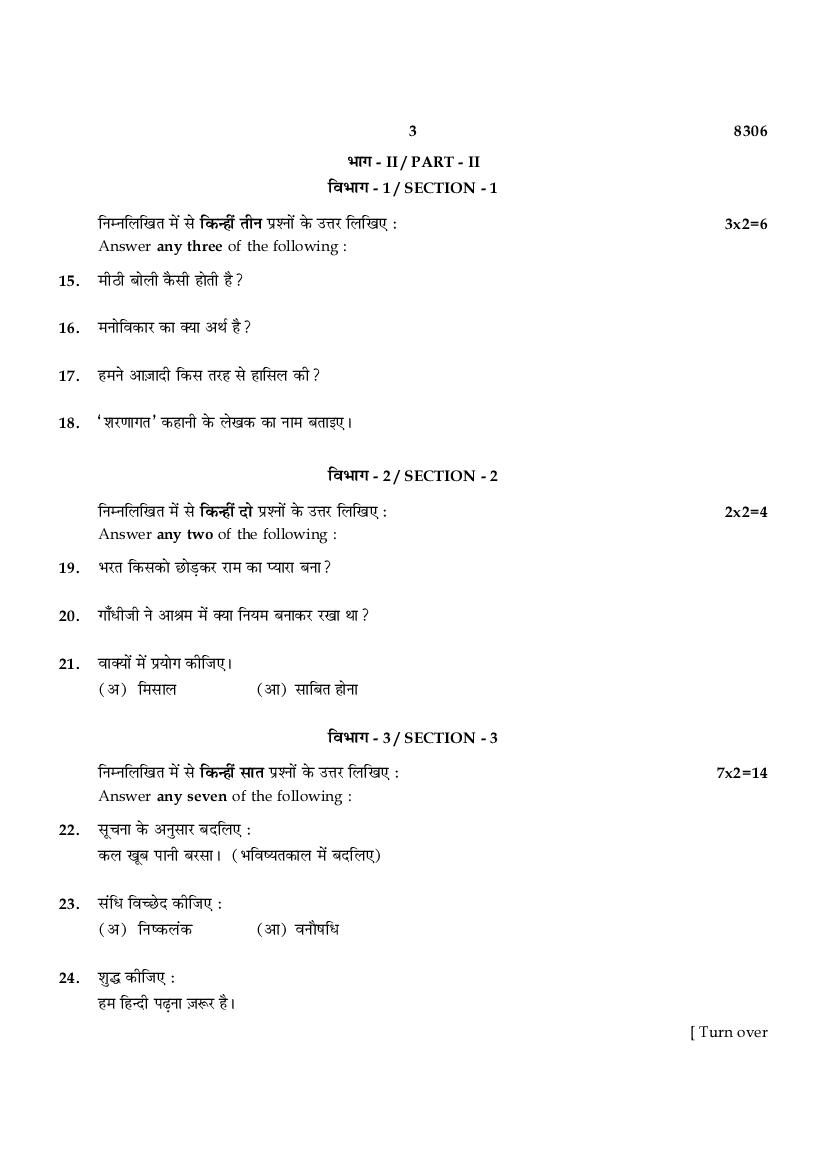 While you can easily download the TN 12th Hindi previous year question paper from link above. Similarly you can study the complete Hindi question paper here also. The entire HSE (+2) question paper is as follows.