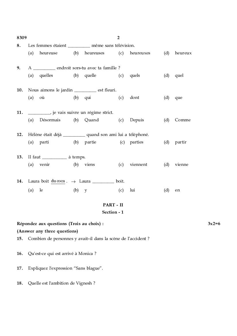 | Educational Resource Here | Tamil Nadu Board Previous Year Question Paper of Class 12 French |