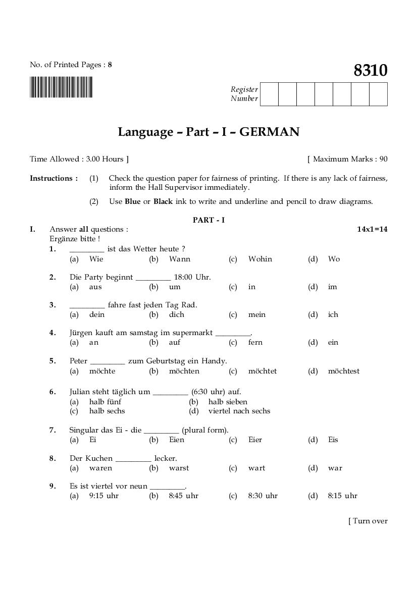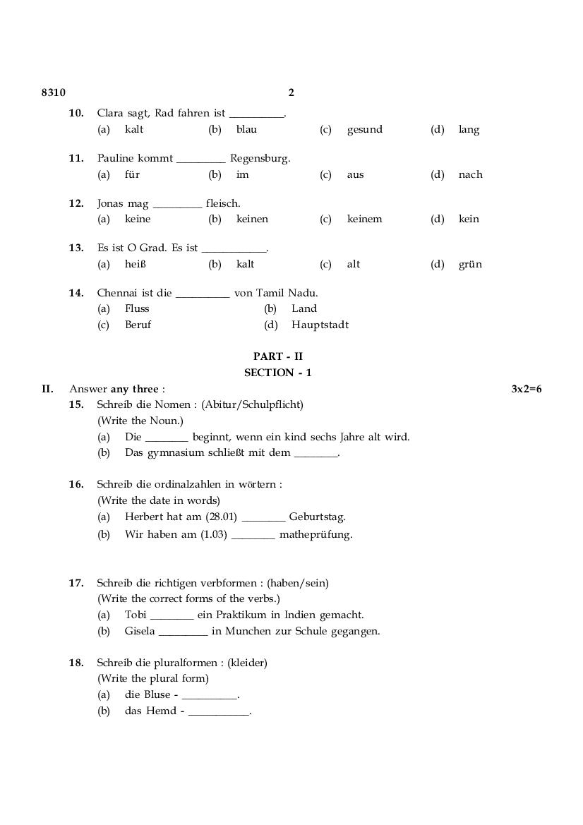 The TN Board Previous Year Question Paper for HSE (+2) (Class 12) German is as follows.