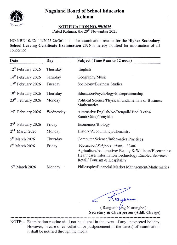 Latest: – NBSE HSSLC Routine 2026 has been released. Scroll down to check the complete time table.