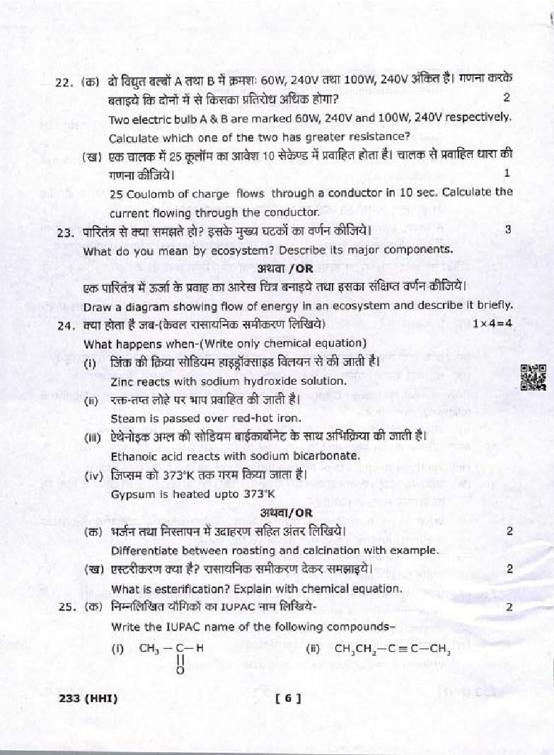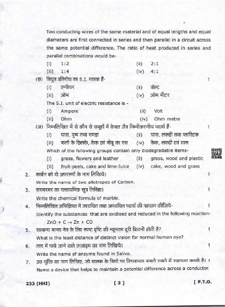 | Study Material Here | Uttarakhand Board Previous Year Question Paper of Class 10 Science |