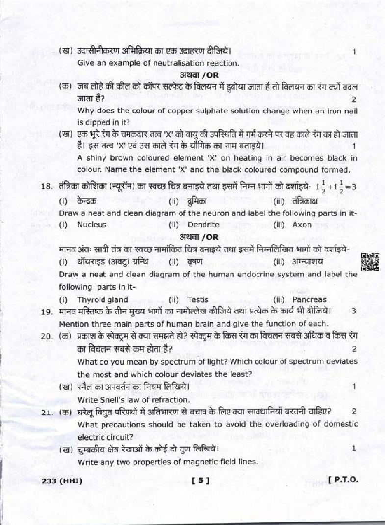 The Uttarakhand Board question paper of class 10 for Science is as follows.
