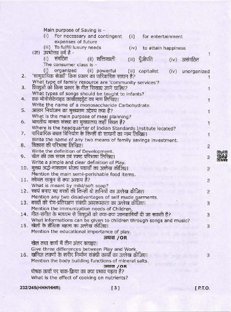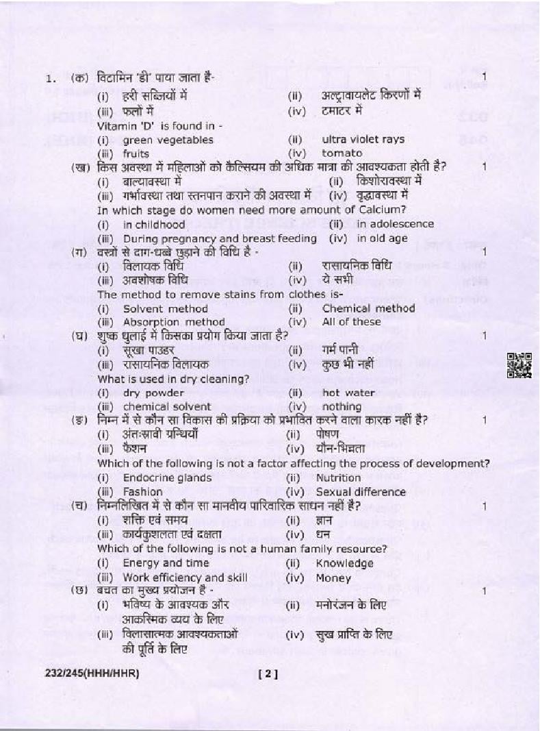 The complete class 10 Home Science question paper is as follows.