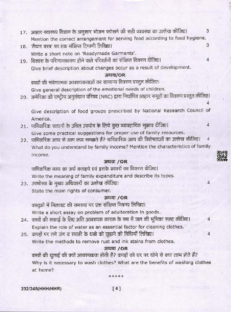 | Study Material Here | Uttarakhand Board Previous Year Question Paper of Class 10 Home Science |