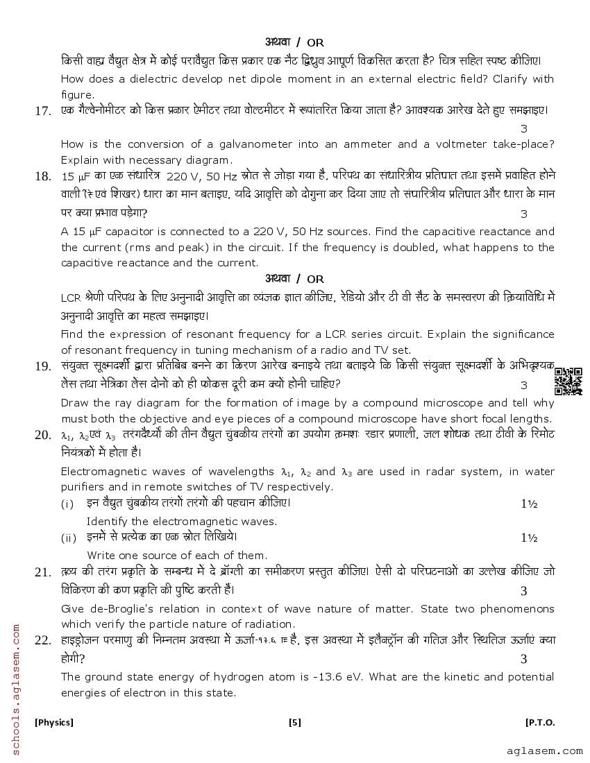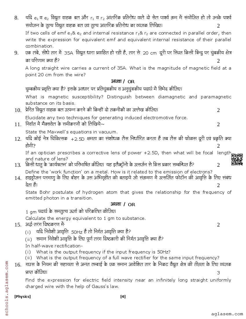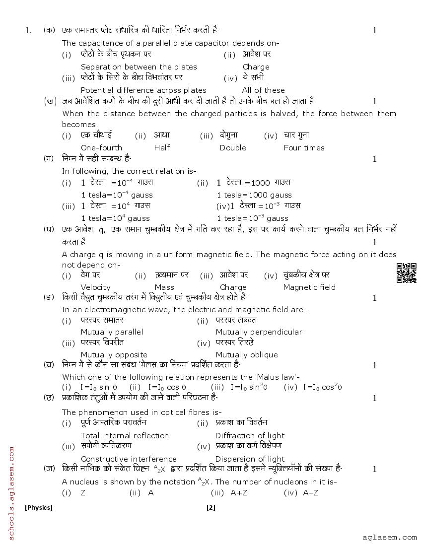 The UK Board Class 12 Sample Paper for Physics is as follows. Uttarakhand Board of School Education (UBSE) has published this with other UK board sample papers.