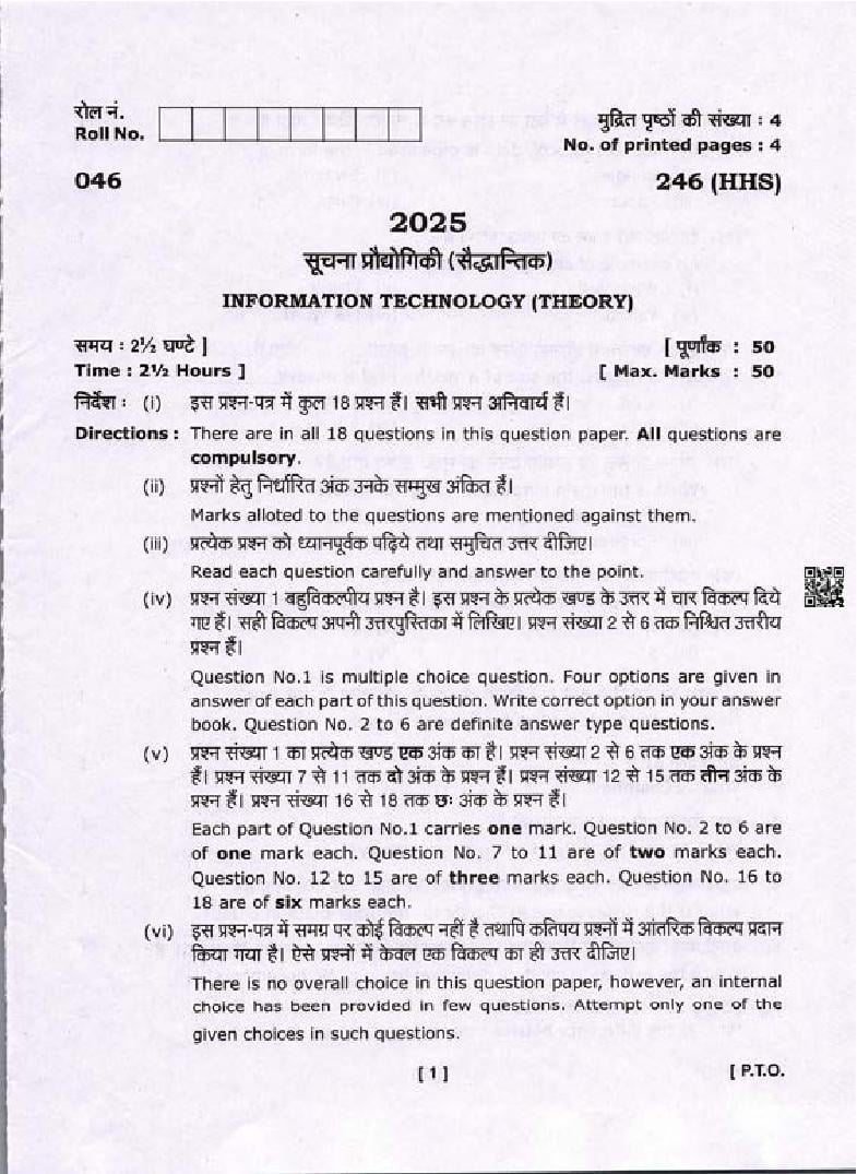 Uttarakhand Board Class 10 Information Technology Question Paper 2025