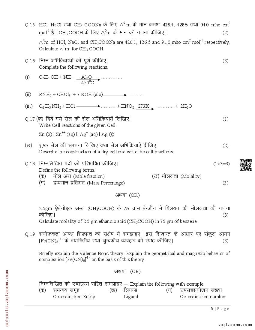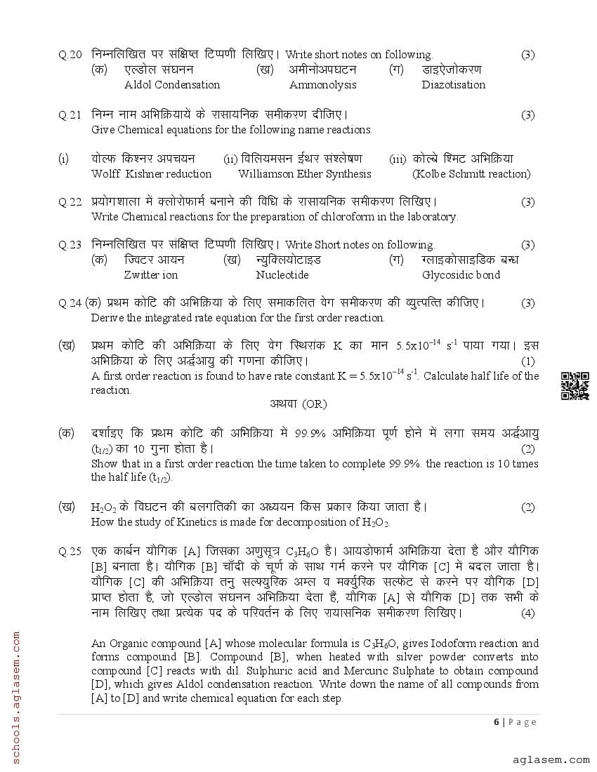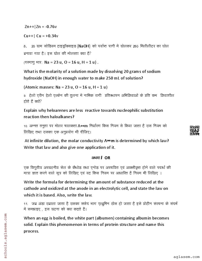 You can also check sample question papers for 12th class other than Chemistry subject from links give below: