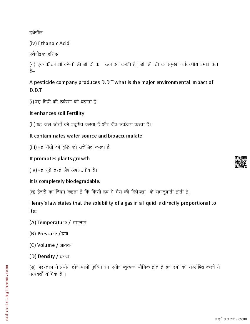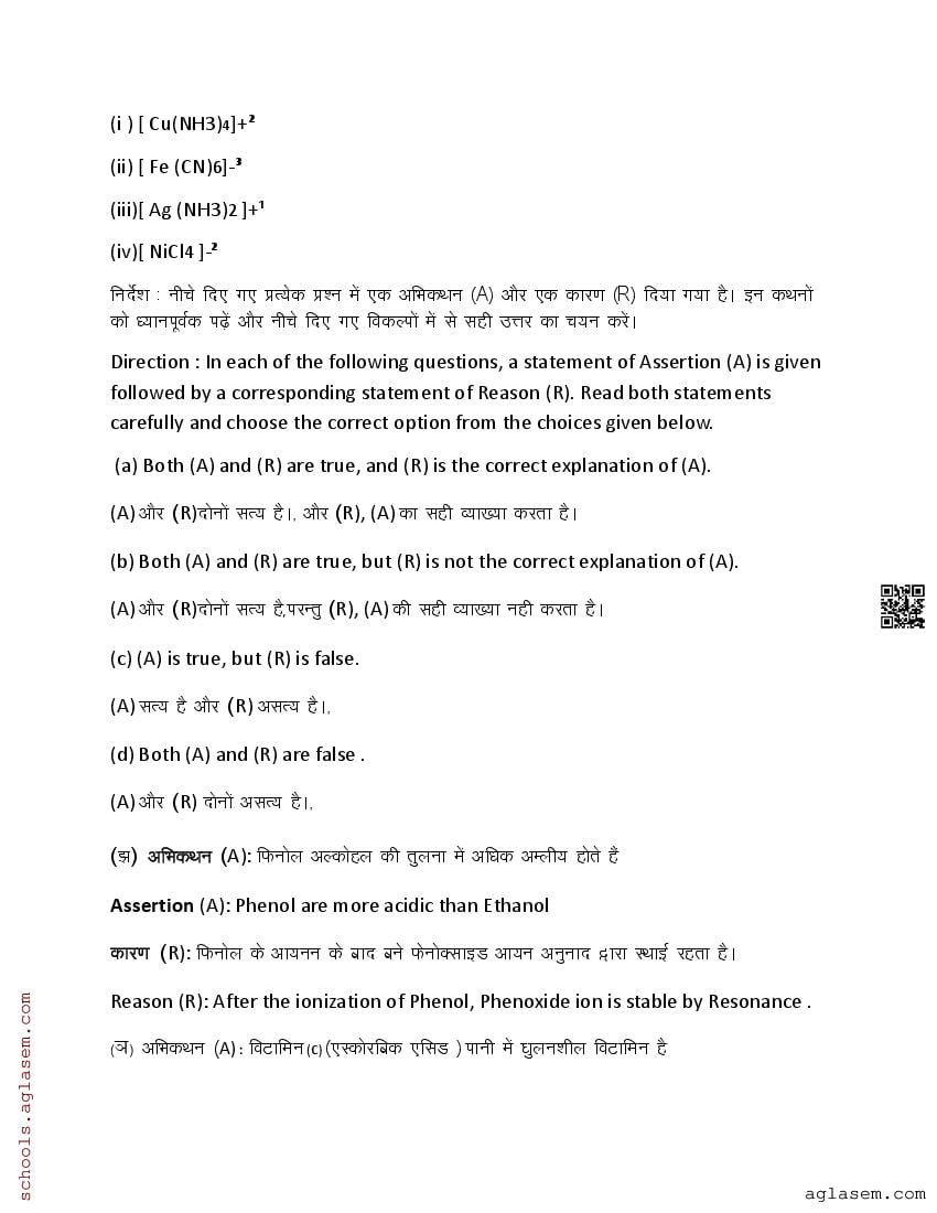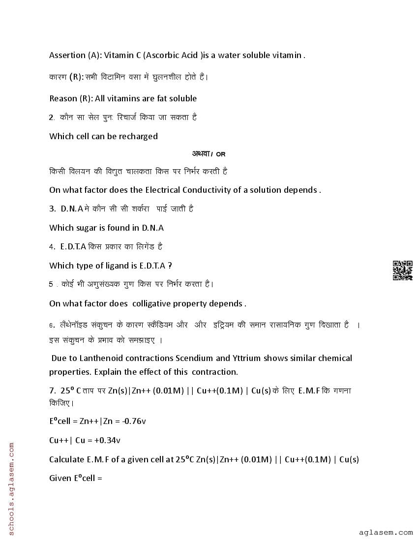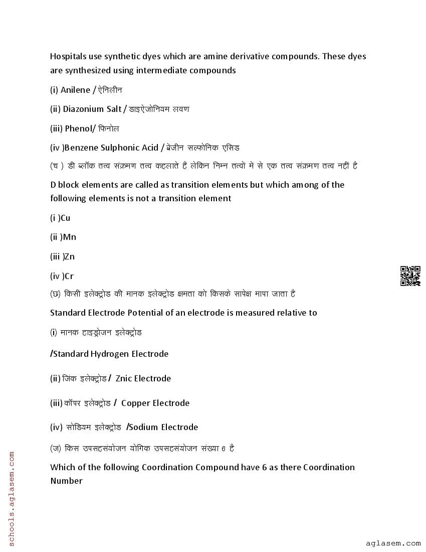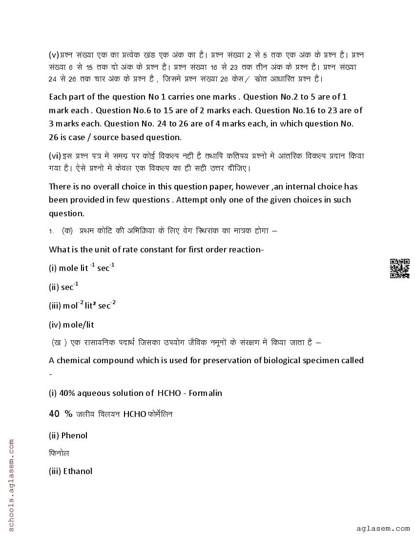 The UK Board Class 12 Sample Paper for Chemistry is as follows. Uttarakhand Board of School Education (UBSE) has published this with other UK board sample papers.