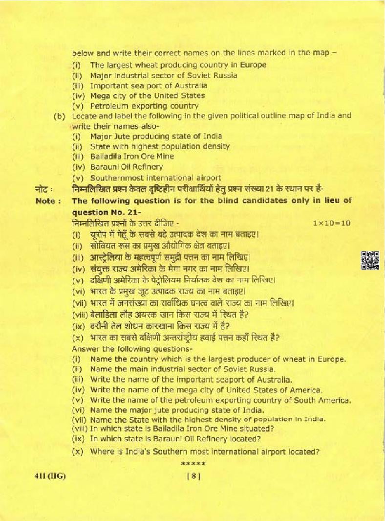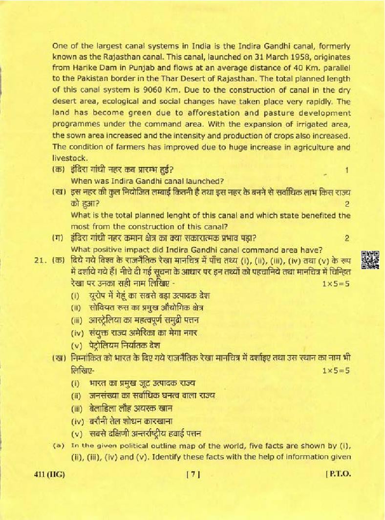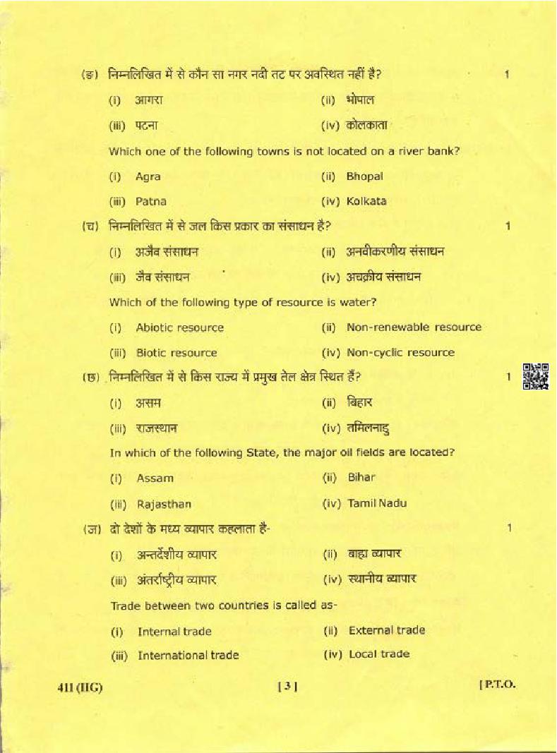 The complete class 12 Geography question paper is as follows.
