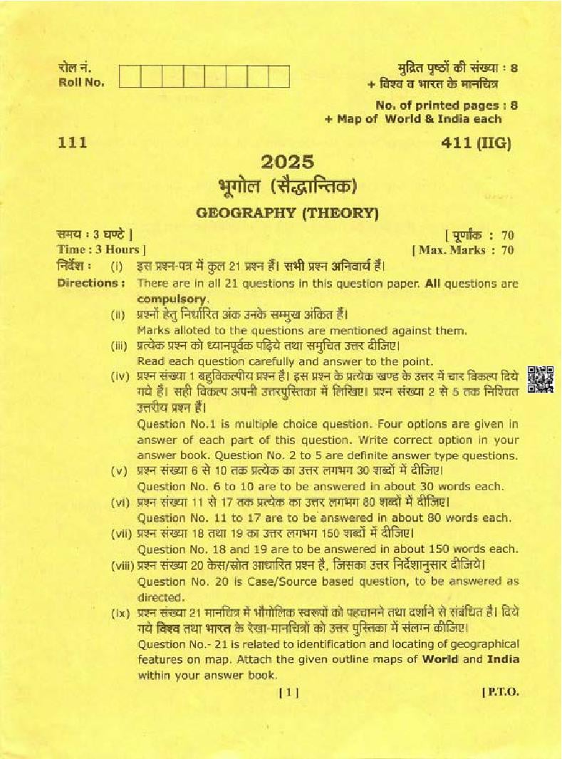 Uttarakhand Board Class 12 Geography Question Paper 2025