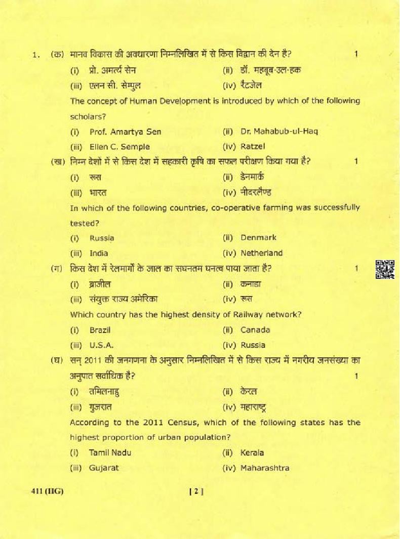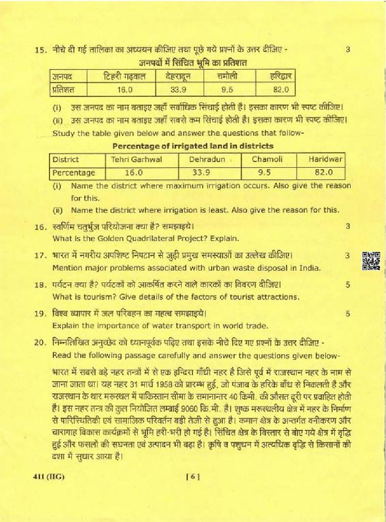 The Uttarakhand Board question paper of class 12 for Geography is as follows.