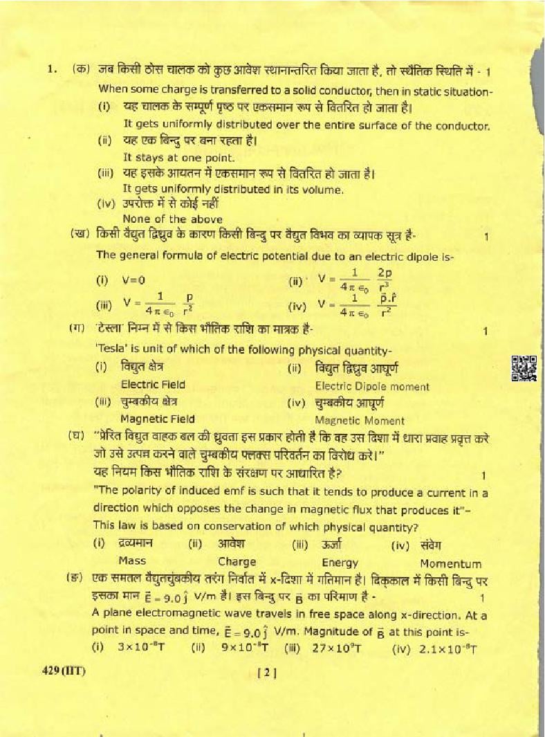 The Uttarakhand Board question paper of class 12 for Physics is as follows.