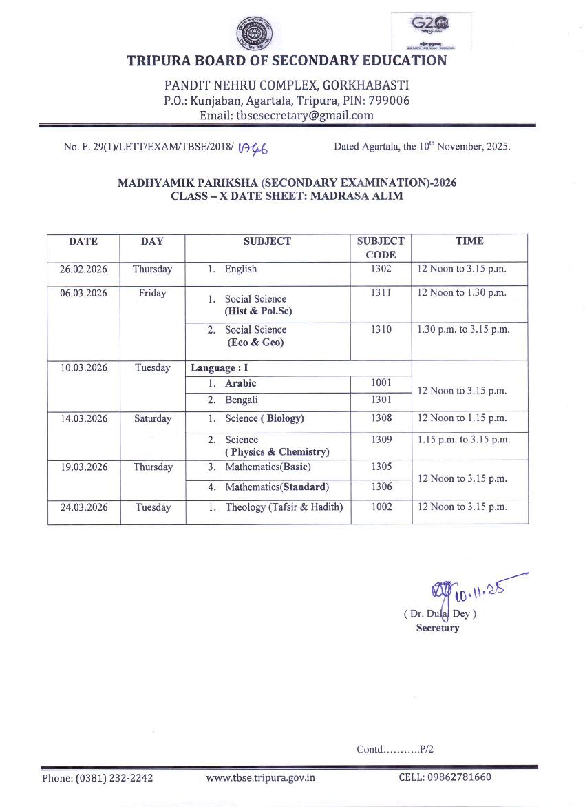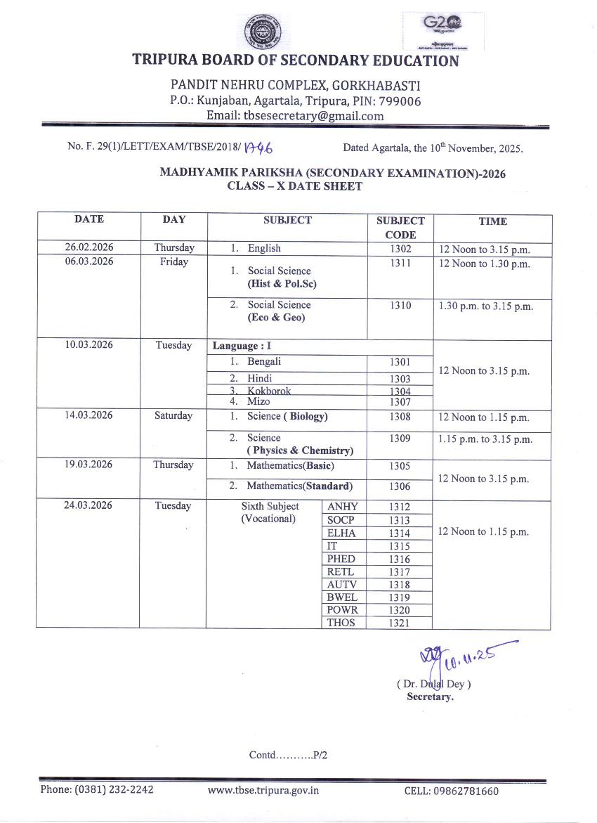 If you have any queries on TBSE Madhyamik Routine 2026, then please ask in comments below.