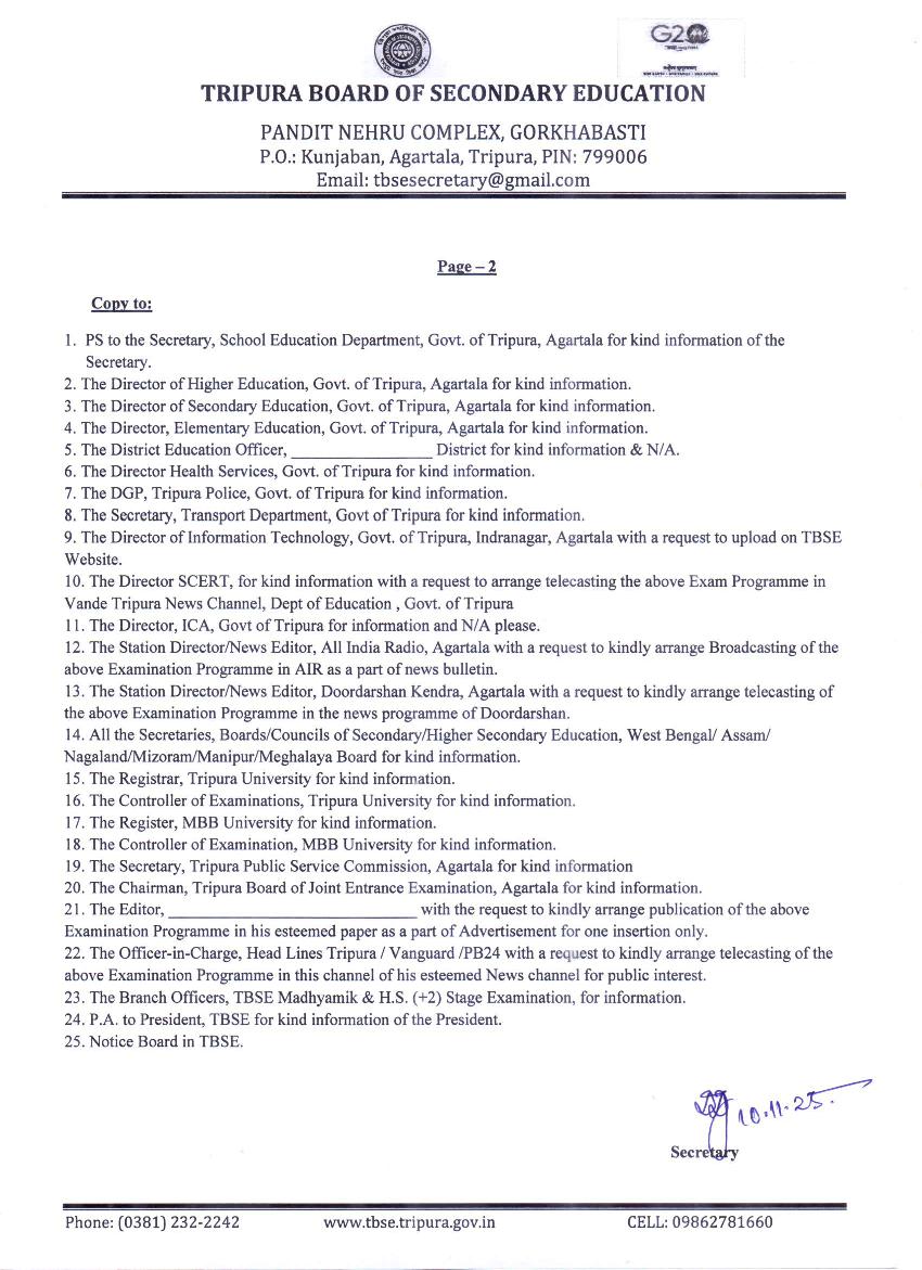 - The Tripura Board of Secondary Education (TBSE) conducts Tripura Madhyamik Exams that are State level exams in Tripura.