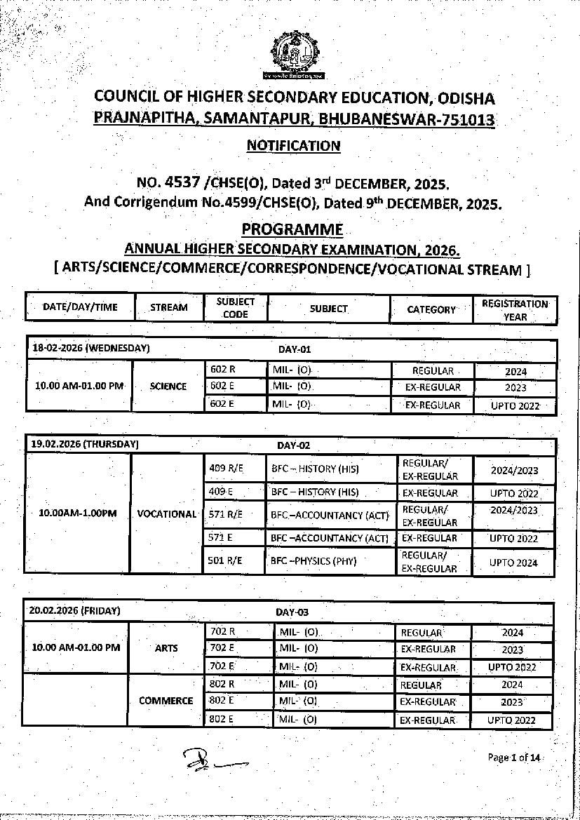 If you have any queries on Odisha CHSE Time Table 2026, then please ask in comments below.
