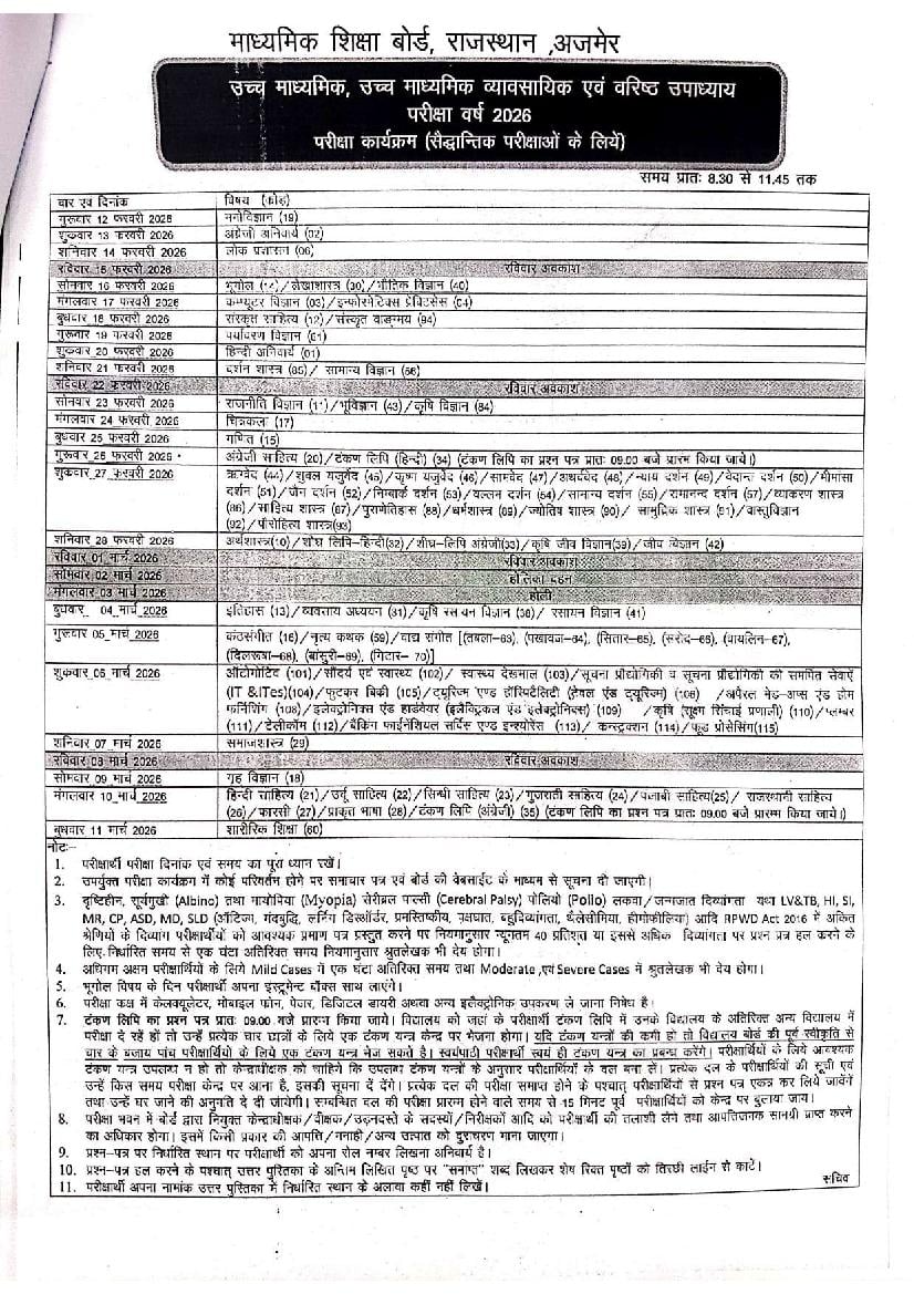 Latest: – RBSE 12th Time Table 2026 has been released. Scroll down to check the complete time table.