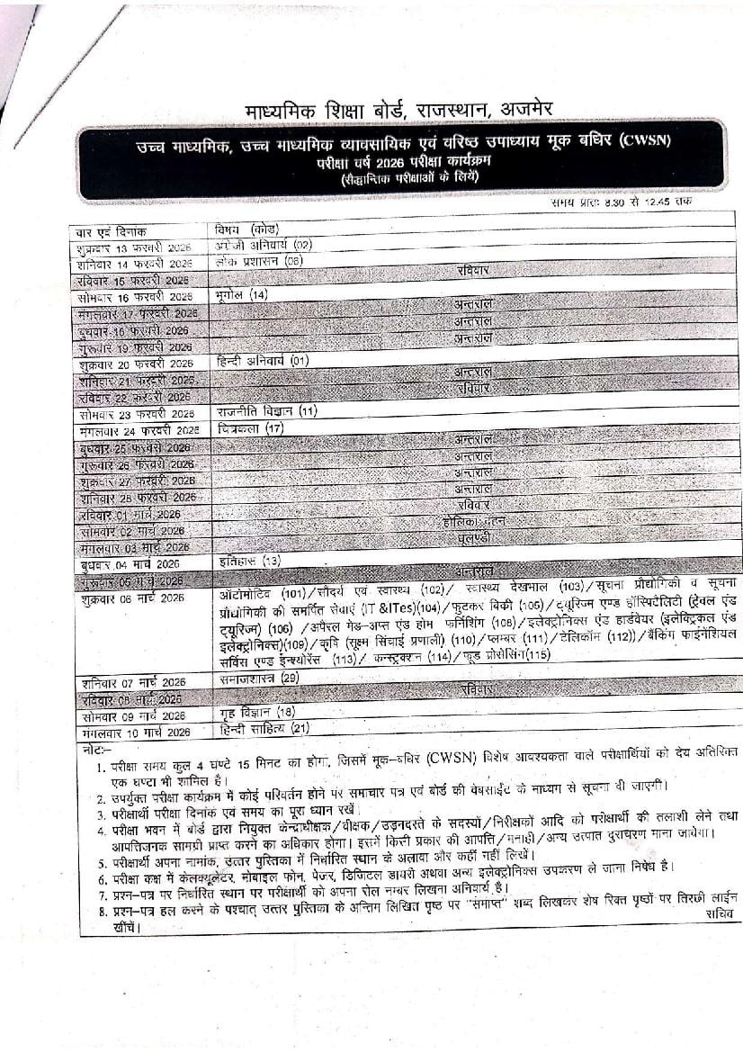 If you have any queries on RBSE 12th Time Table 2026, then please ask in comments below.
